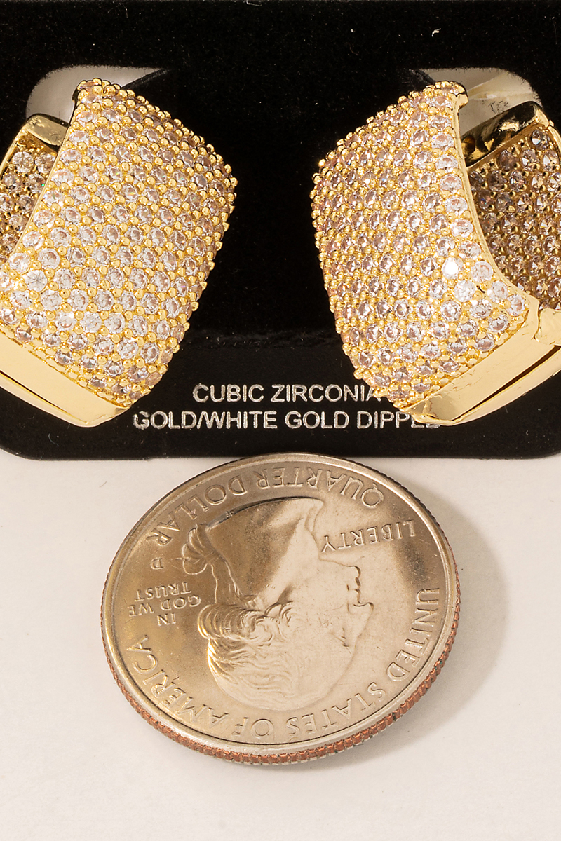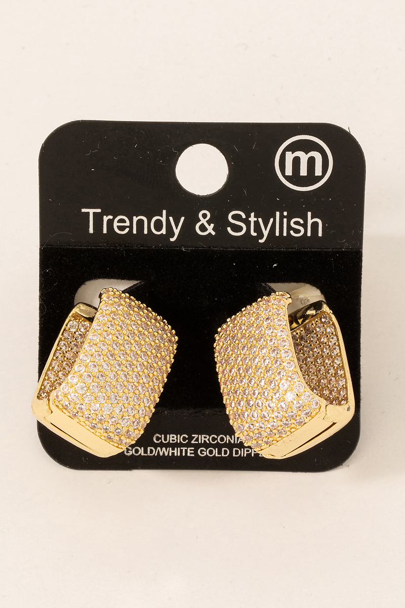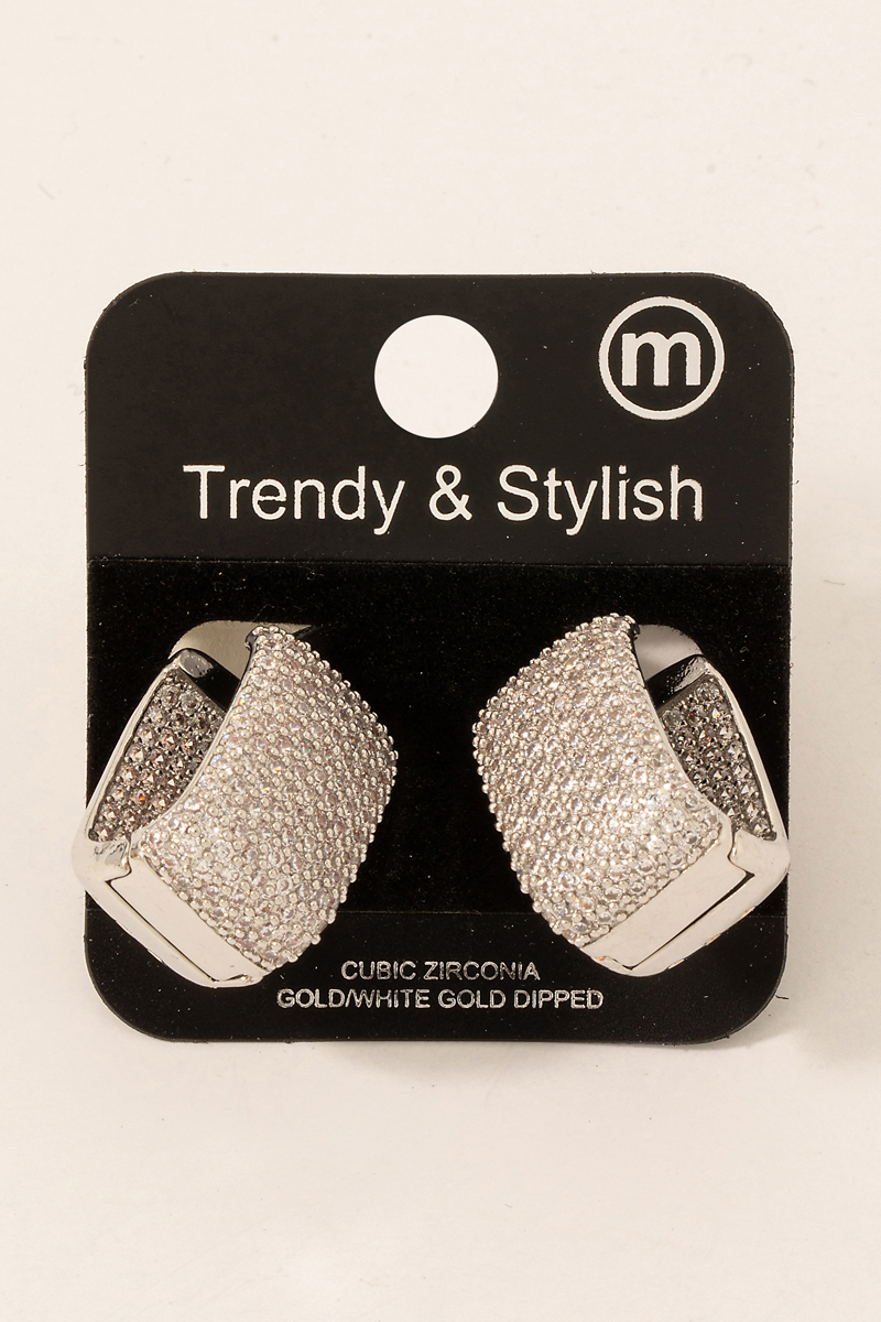 - This pair of hoop earrings adds a modern cubic zirconia pave rectangle style. Immerse yourself in the details of design, as this pair of hoop earrings effortlessly becomes a conversation starter.