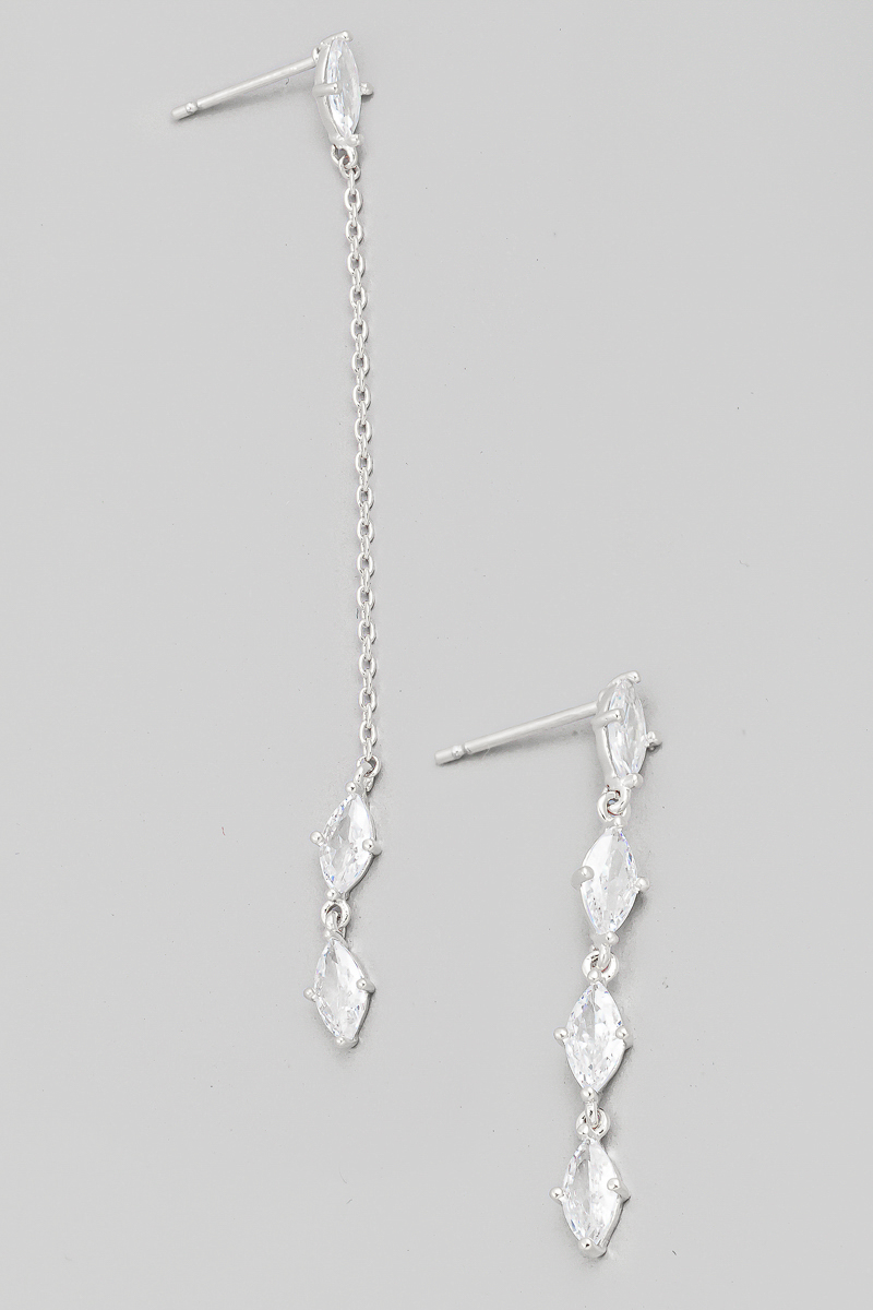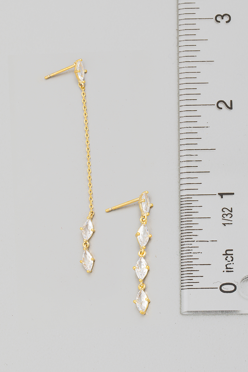 - This pair of dangle earrings brings a unique cz asymmetric stud chain style. Celebrate individuality with this accessory that effortlessly expresses your unique sense of style.
