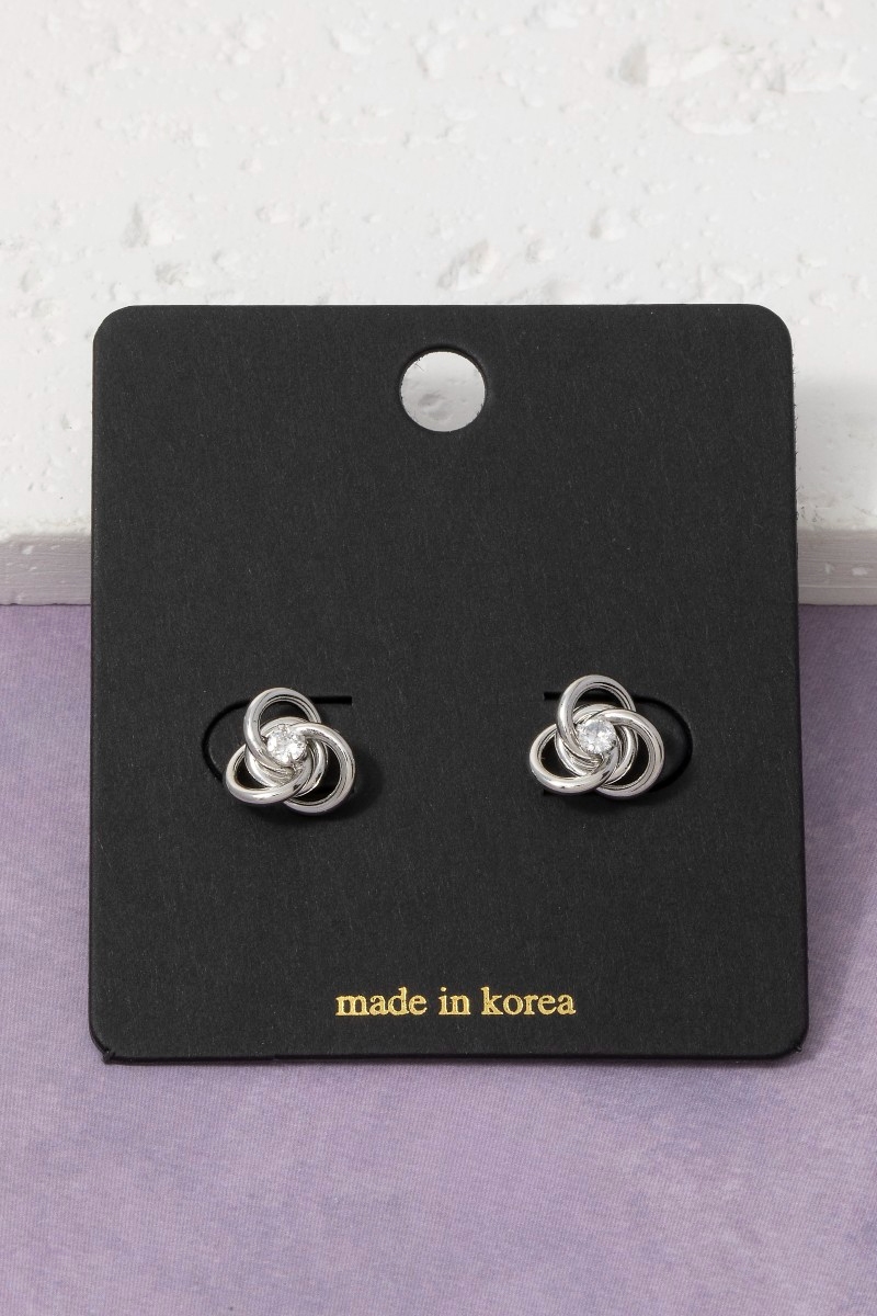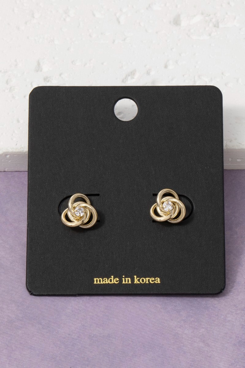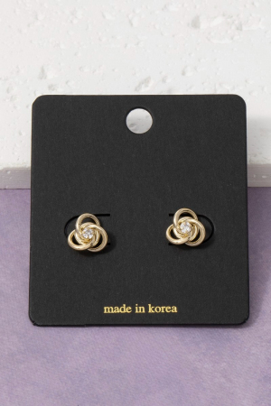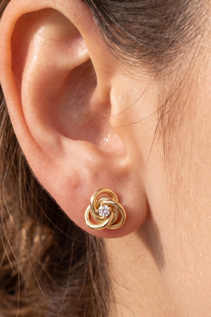 • This pair of stud earrings showcases a timeless cz love knot swirl style. Indulge in the artistry of accessorizing with this unique piece.