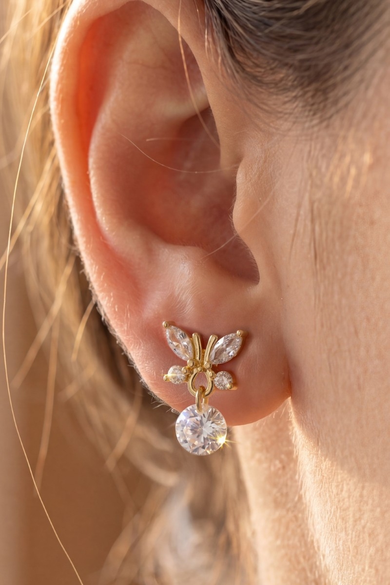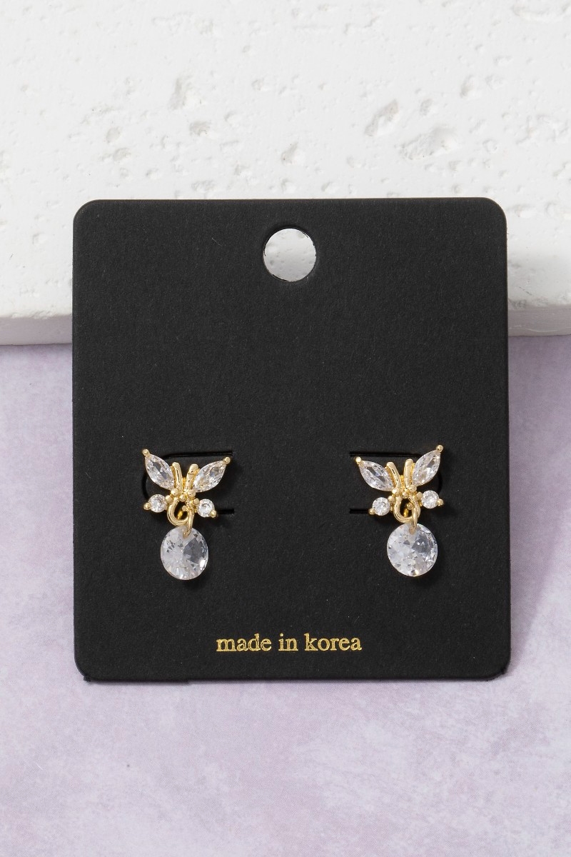 • This pair of drop earrings brings a unique cz marquise butterfly cluster & round cubic zirconia style. Experience refined sophistication with this understated yet stylish piece.