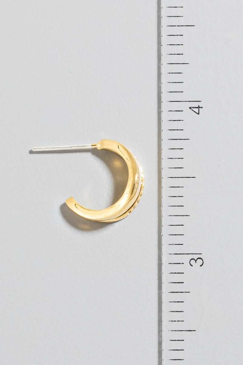 • This pair of hoop earrings displays a fashionable cz pave row layered style. Experience a burst of creativity in accessorizing as this piece effortlessly sets the tone for your unique style.