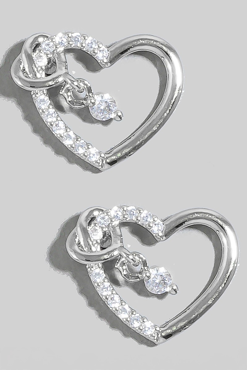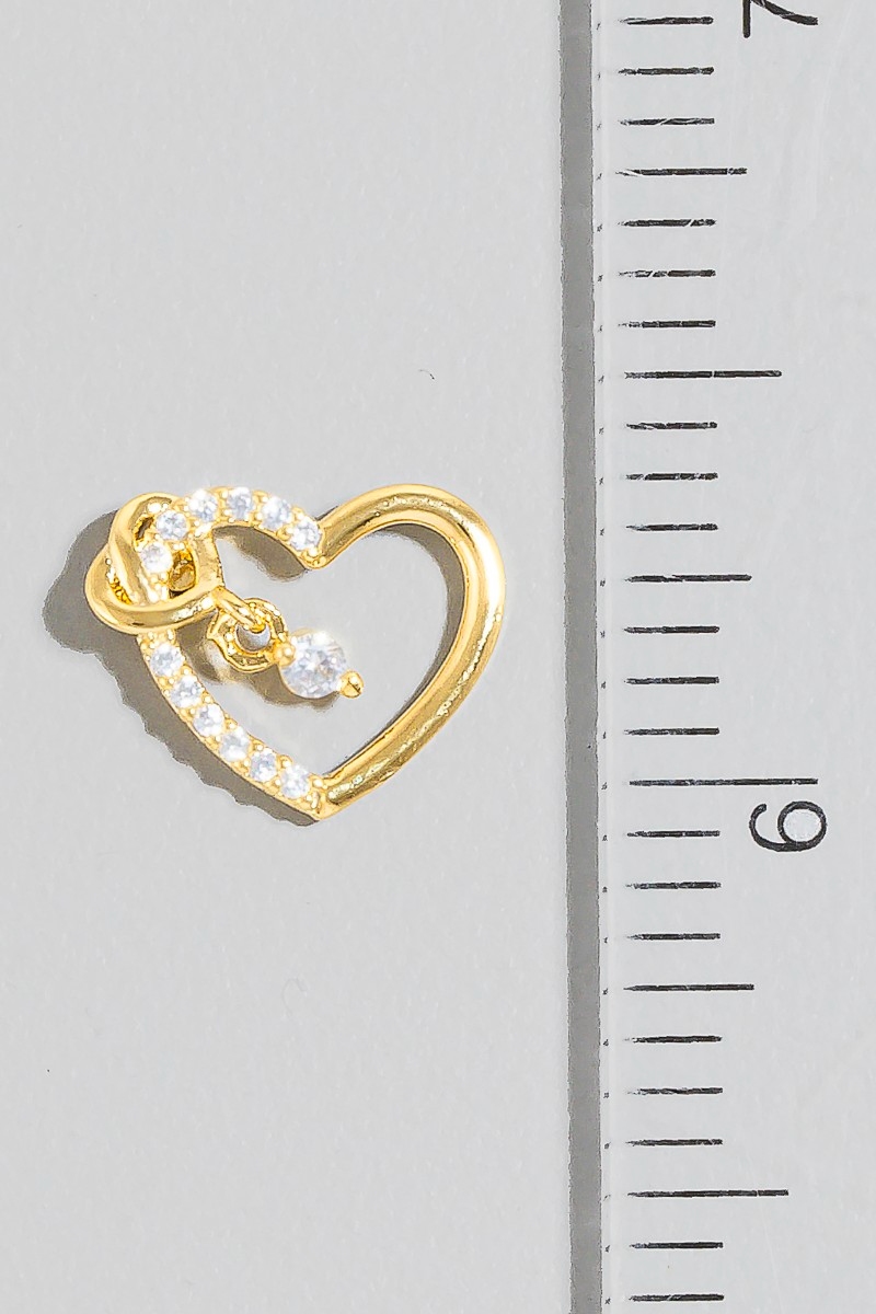 • This pair of earrings introduces a unique cz studded heart stud and charm style. Experience the joy of accessorizing with this piece that effortlessly combines versatility and charm.