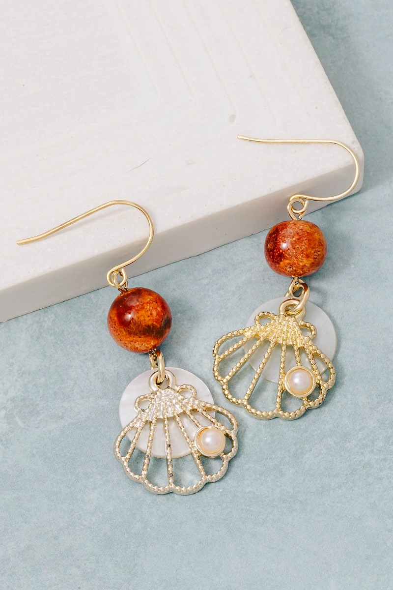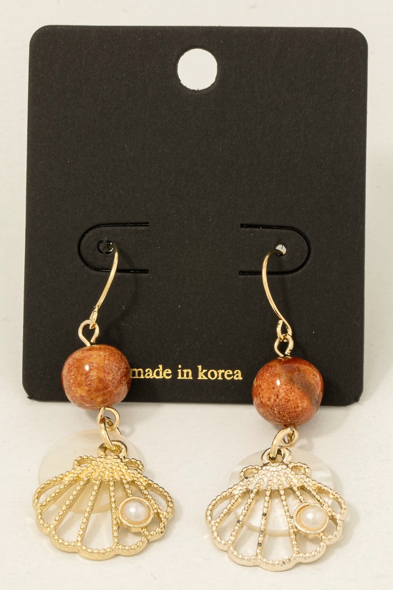 Sea Shell And Fridge Stud Dangle Earrings