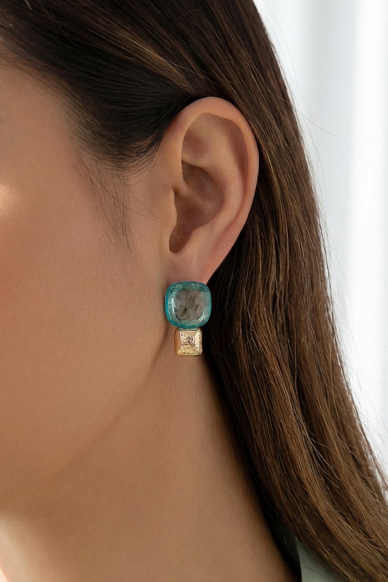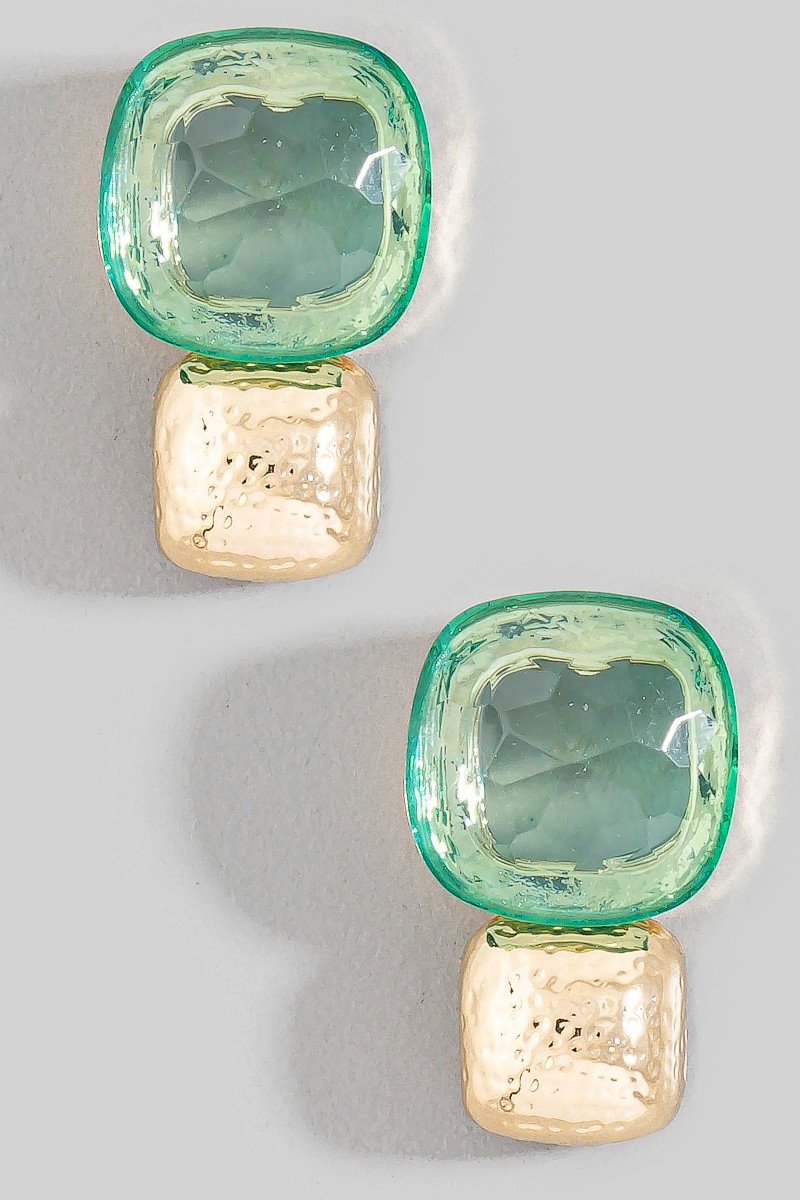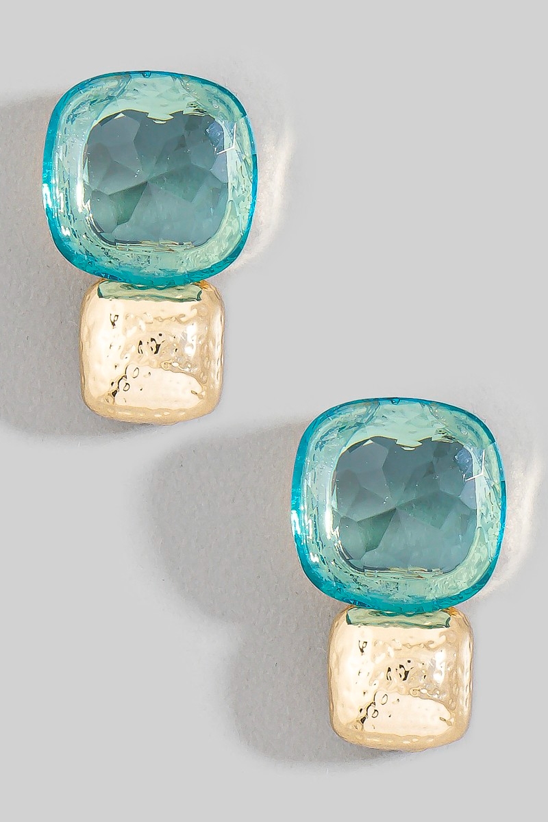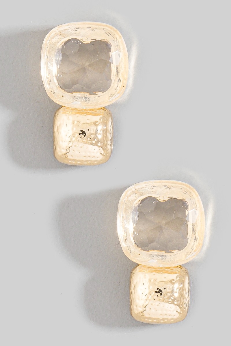- This pair of drop earrings showcases a unique clear square stone style. Celebrate individual style with this versatile, eye-catching addition.