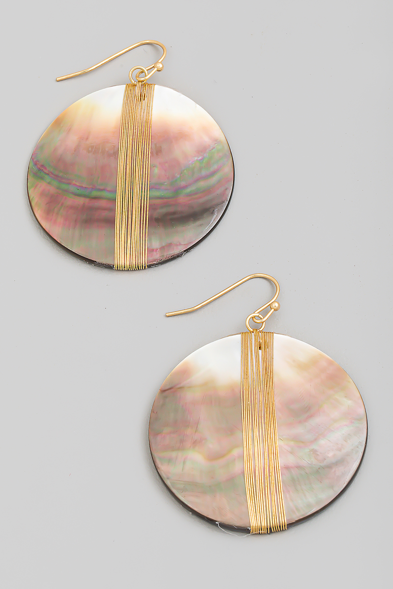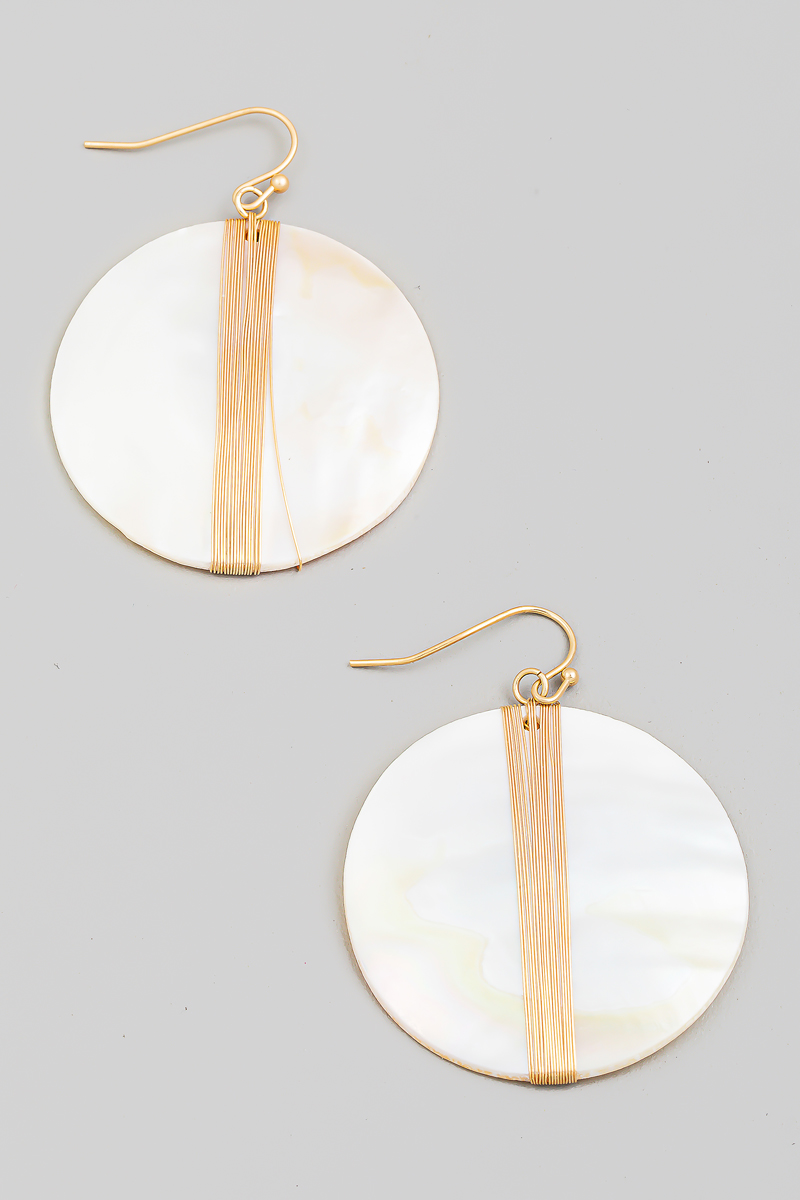- This pair of dangle earrings brings a stunning curved seashell disc dangle earrings style. Unveil modern elegance with this subtly intricate accessory.
