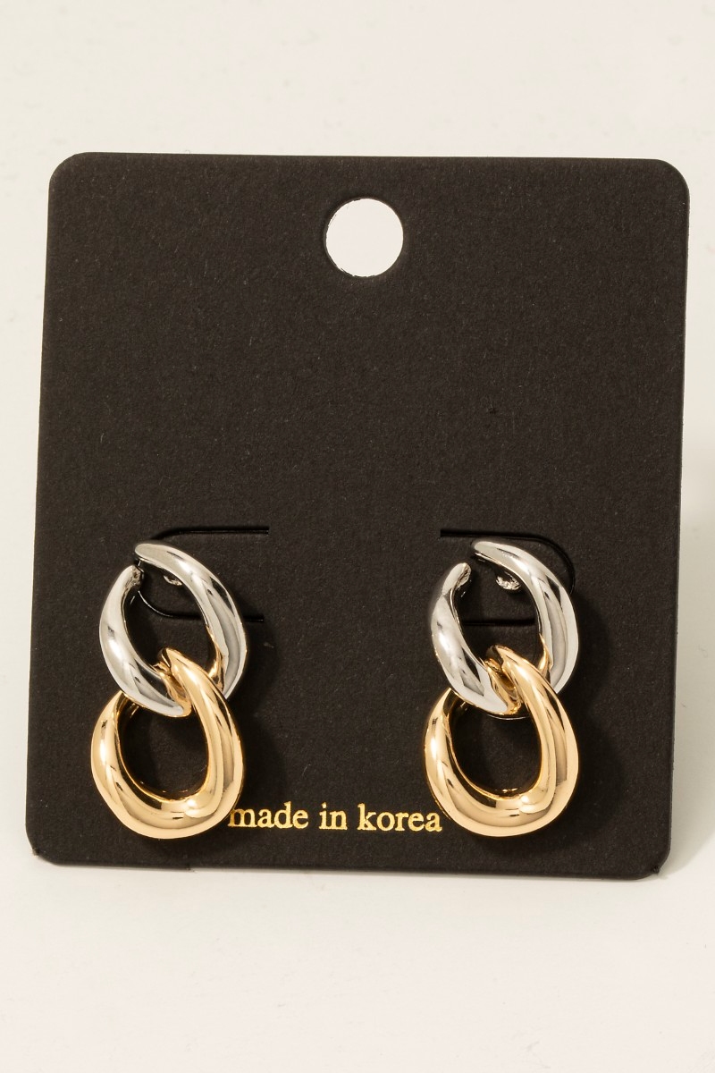- This pair of dangle earrings displays a fashionable double chain link style. Indulge in the artistry of accessorizing with this unique piece.