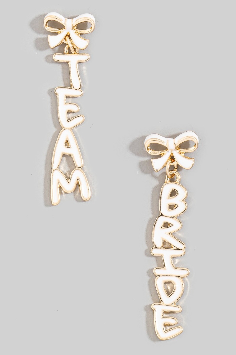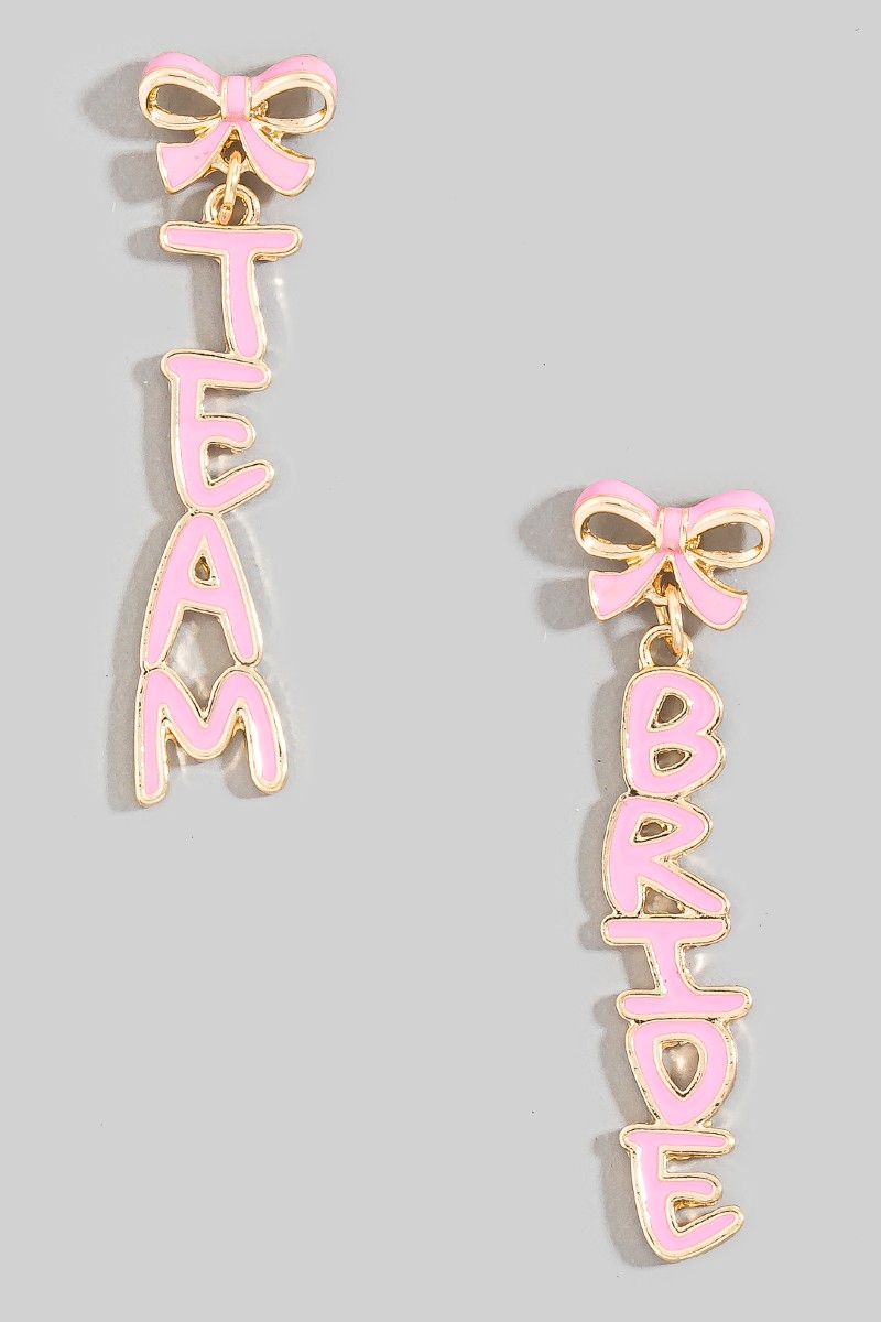 - This pair of dangle earrings displays a vibrant enamel team bride and bow stud style. Unveil modern elegance with this subtly intricate pair of dangle earrings.