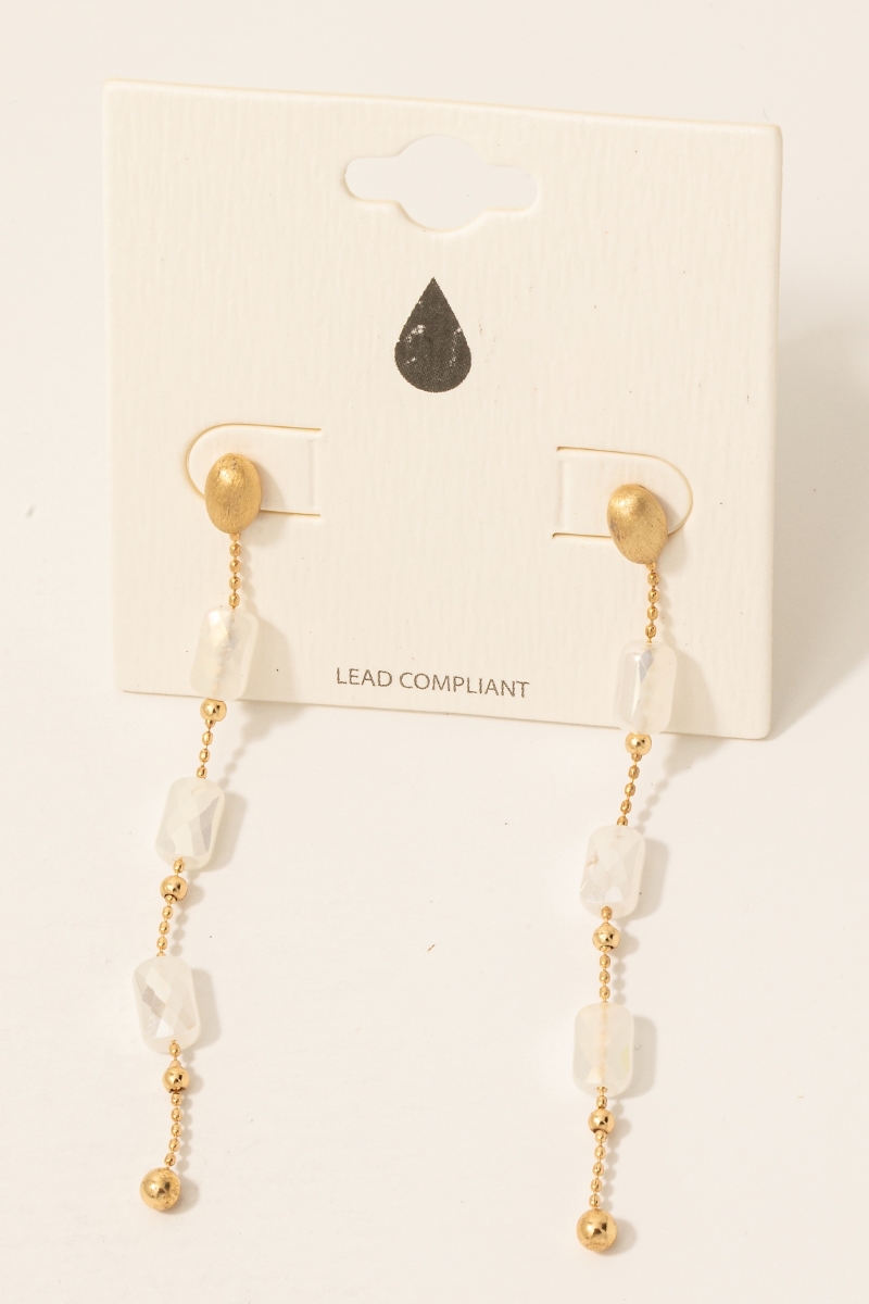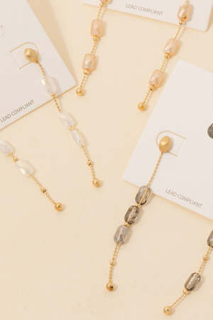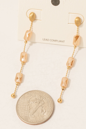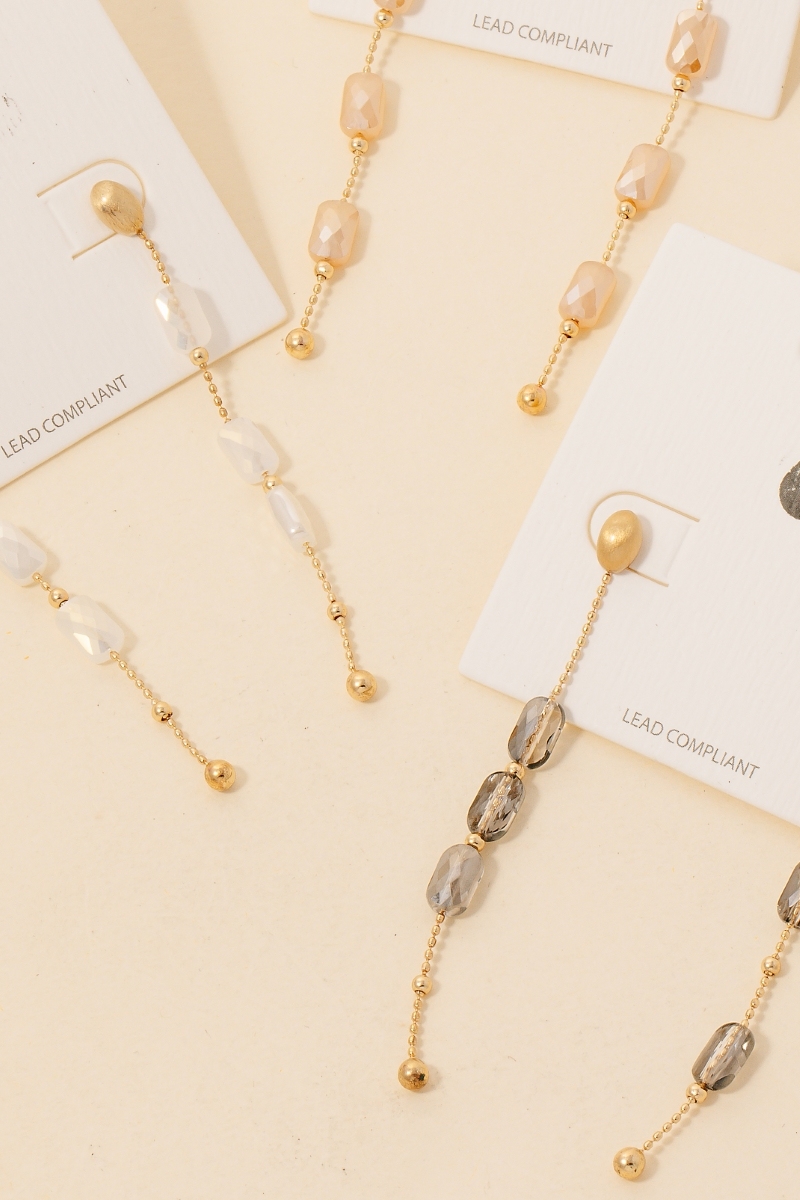 - This pair of dangle earrings brings a luxurious faceted glass bead chain style. Revel in the intricate design that effortlessly distinguishes this pair of dangle earrings, making it a statement piece.