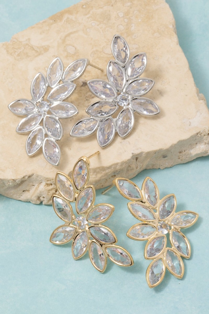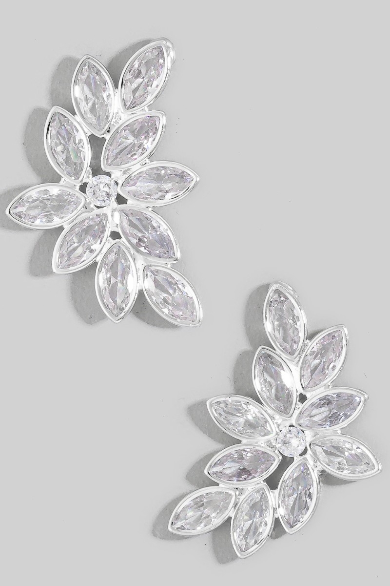 Cz Double Flower Drop Earrings
