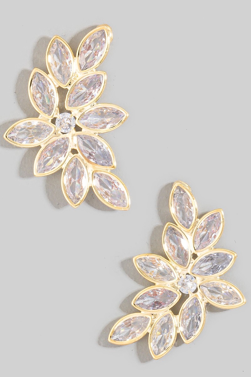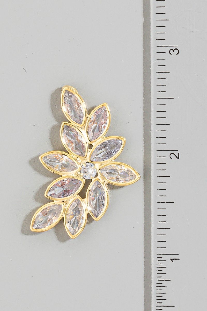 Gold Dipped Cz Leaf Drop Earrings