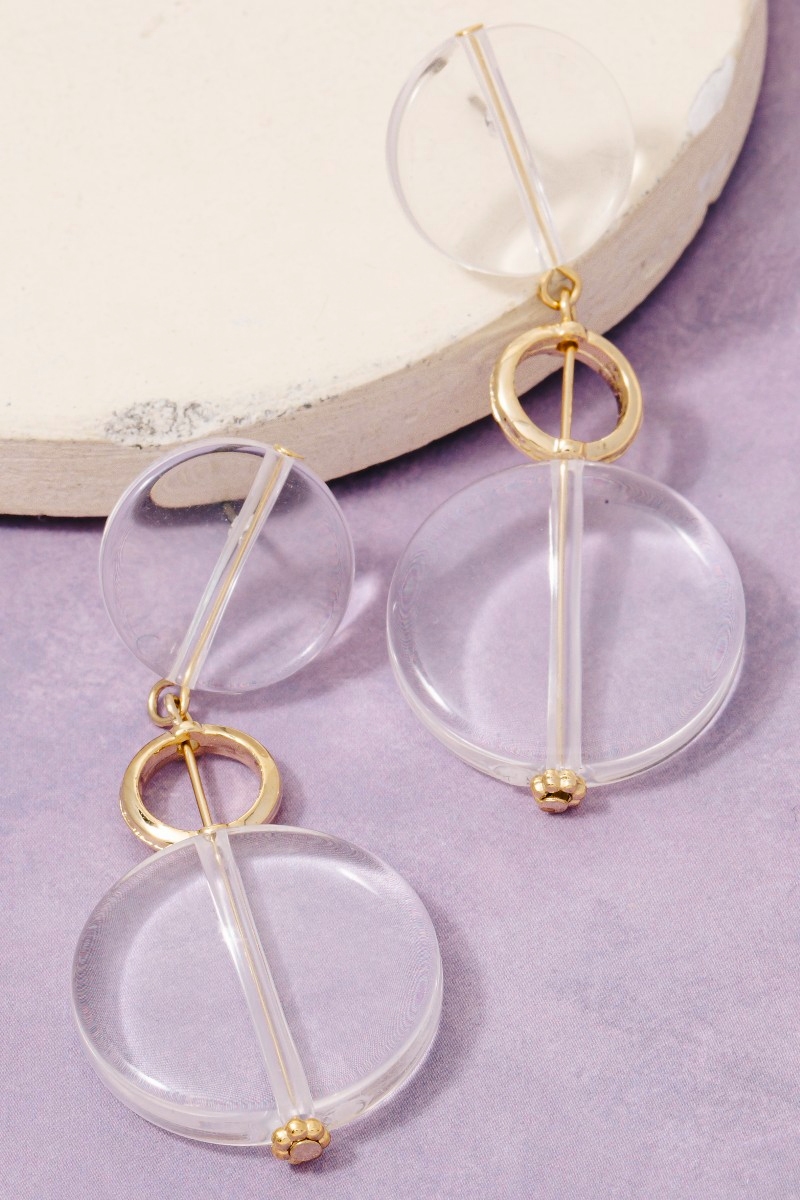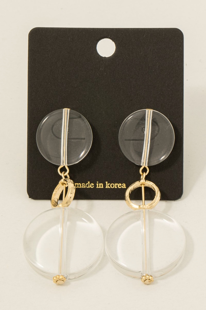 • This pair of dangle earrings displays a vibrant flat acrlyic discs style. Explore a refined sense of style with this pair of dangle earrings, seamlessly elevating the chic factor of your look.