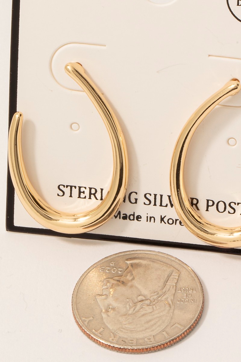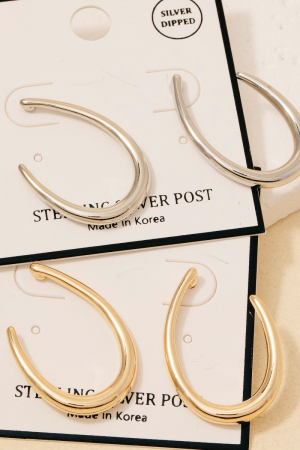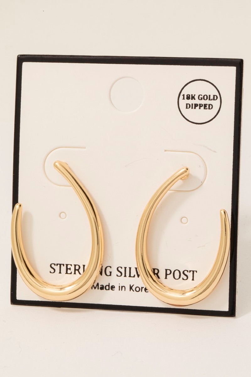 • This pair of drop earrings adds a modern gold dipped curved oval stud style. Savor the allure of detailed craftsmanship in this exquisite pair of drop earrings.