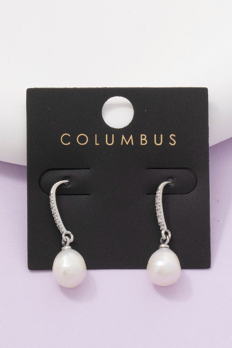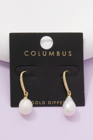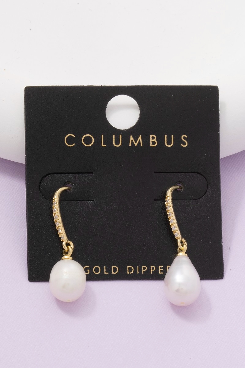 - This pair of dangle earrings displays a fashionable gold dipped cubic zirconia pave bar pearl charm style. Immerse yourself in fashion finesse with this statement pair of dangle earrings.