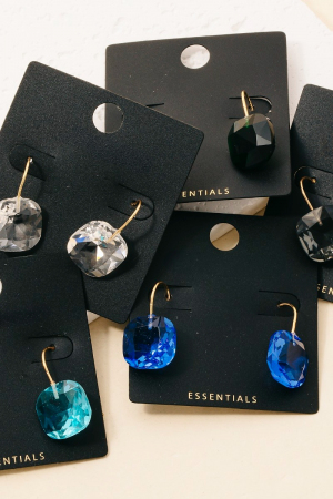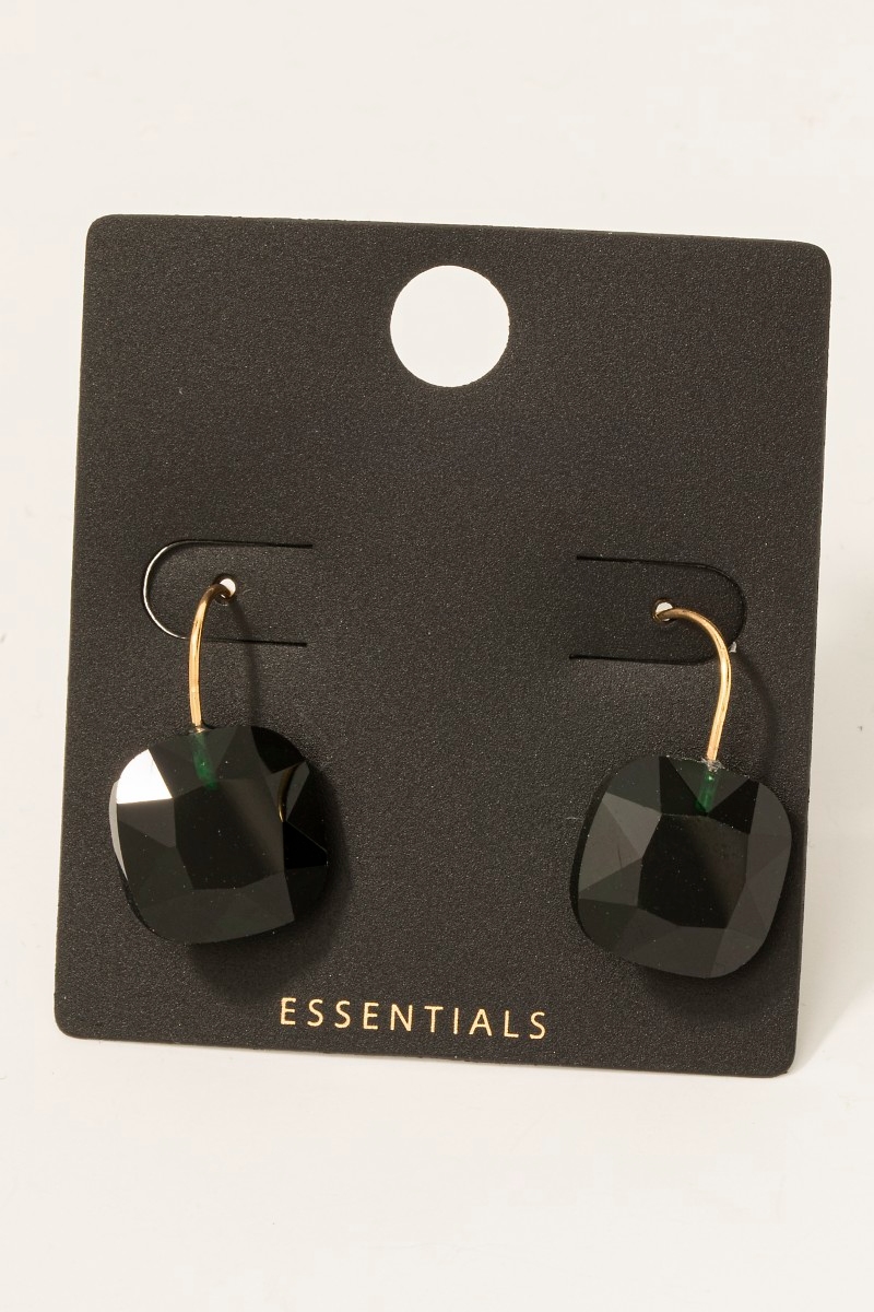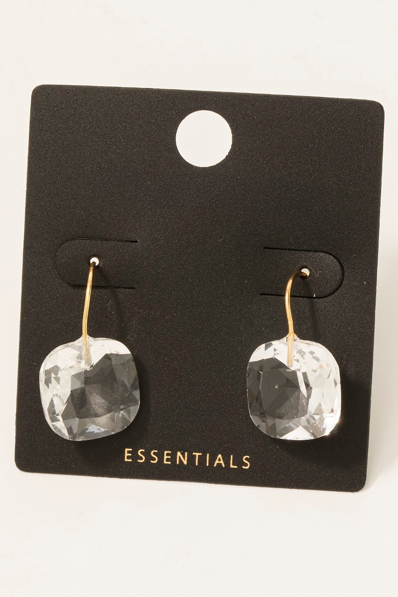 - This pair of drop earrings introduces a stunning gold dipped faceted square glass charm style. Experience refined sophistication with this understated yet stylish piece.