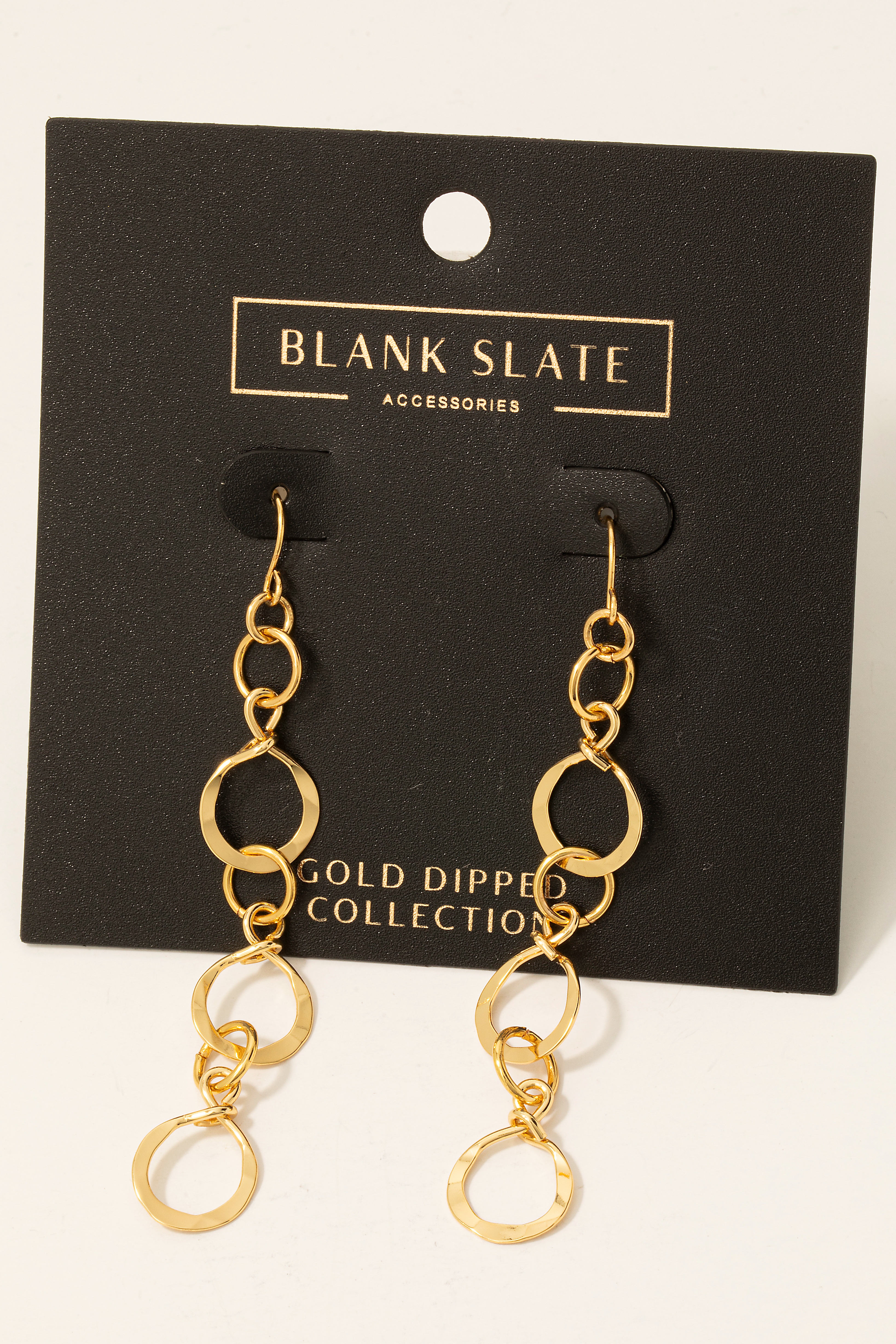 - This pair of dangle earrings introduces a stunning gold dipped hammered chain style. Celebrate individual style with this versatile, eye-catching addition.