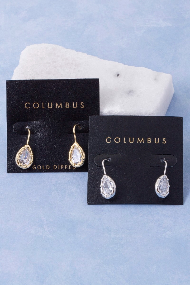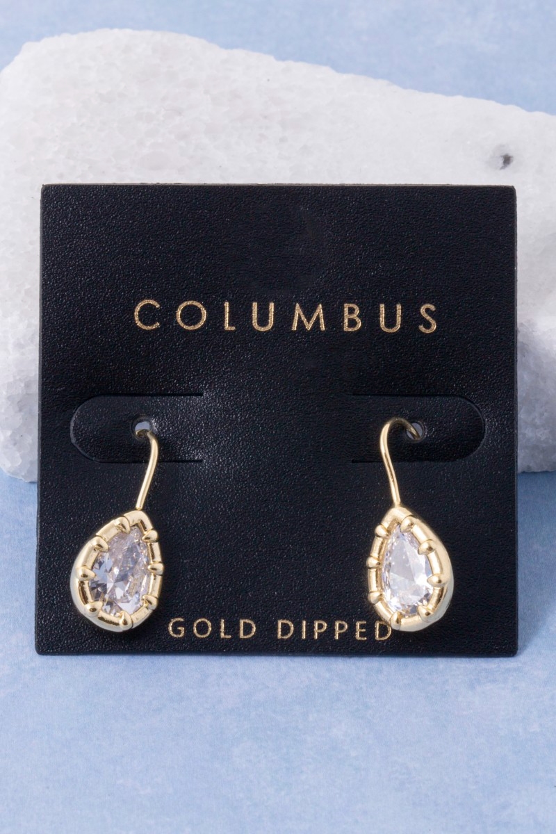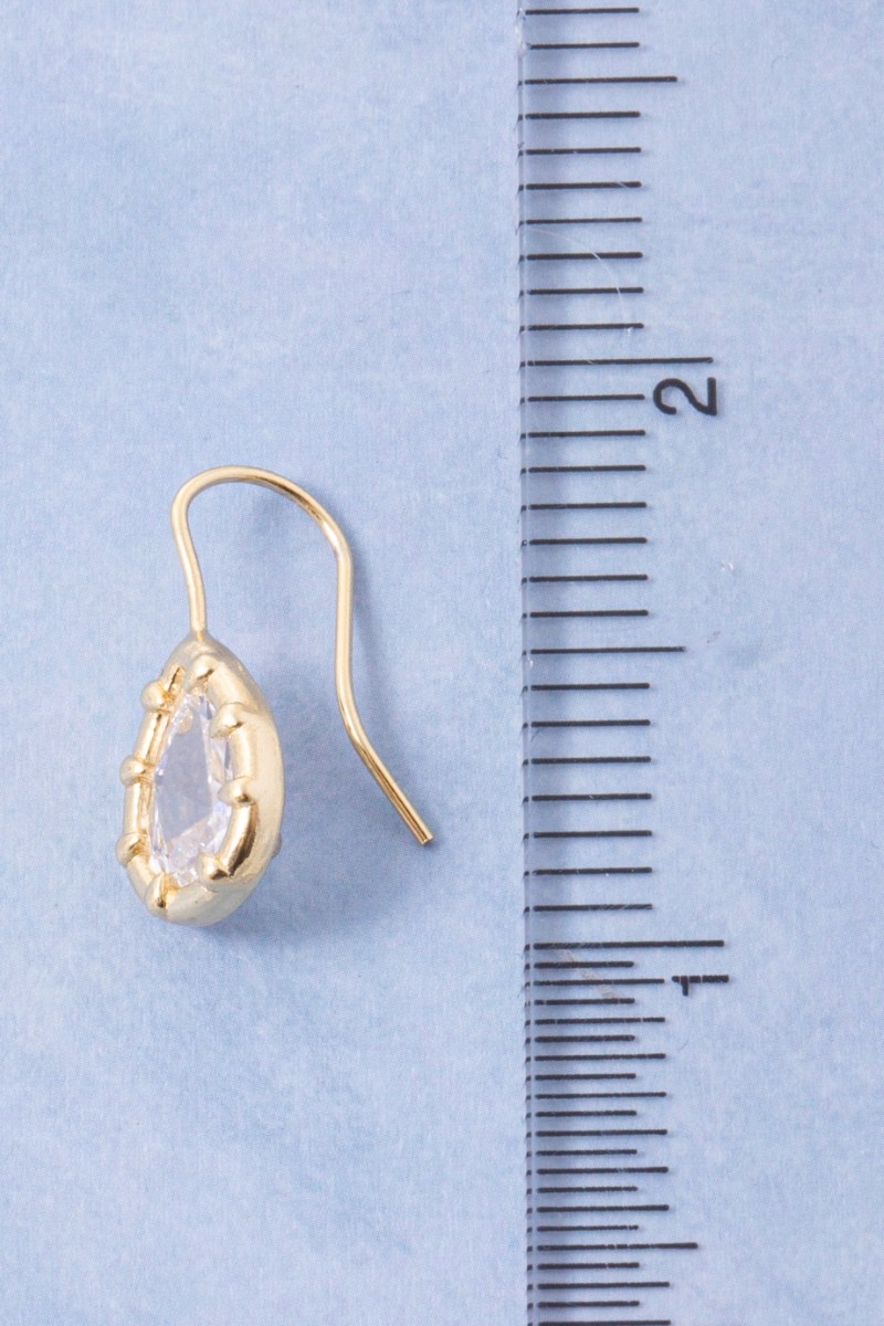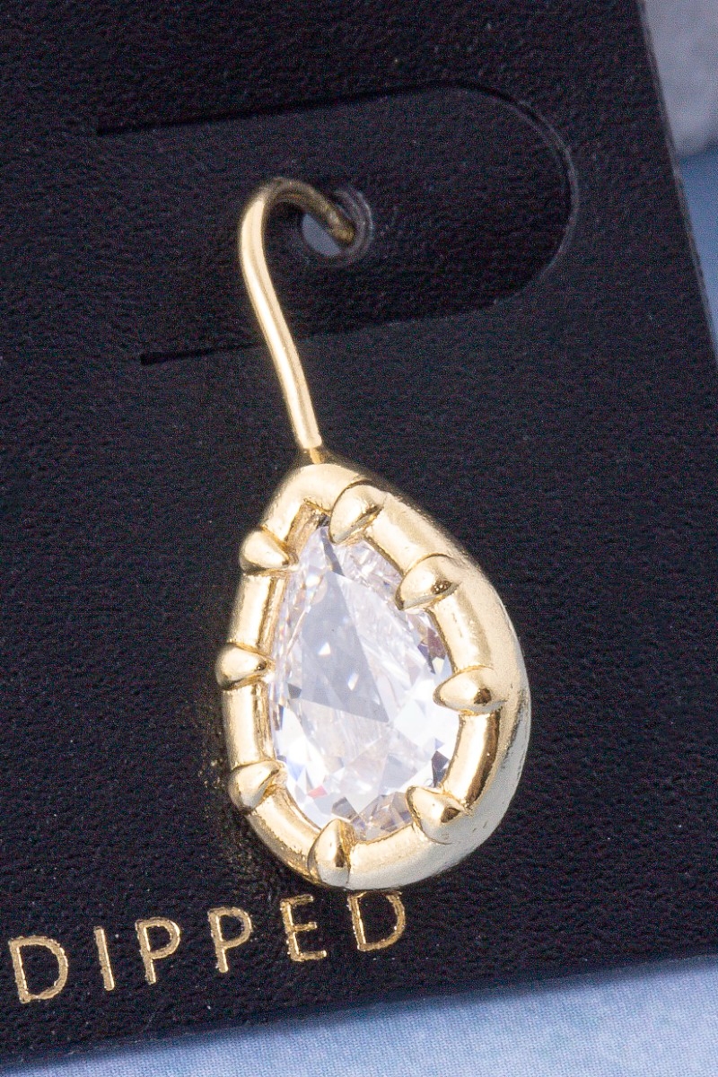 - This pair of dangle earrings showcases a unique gold dipped teardrop cut cubic zirconia style. Witness the perfect fusion of style and functionality as this pair of dangle earrings effortlessly complements your lifestyle.