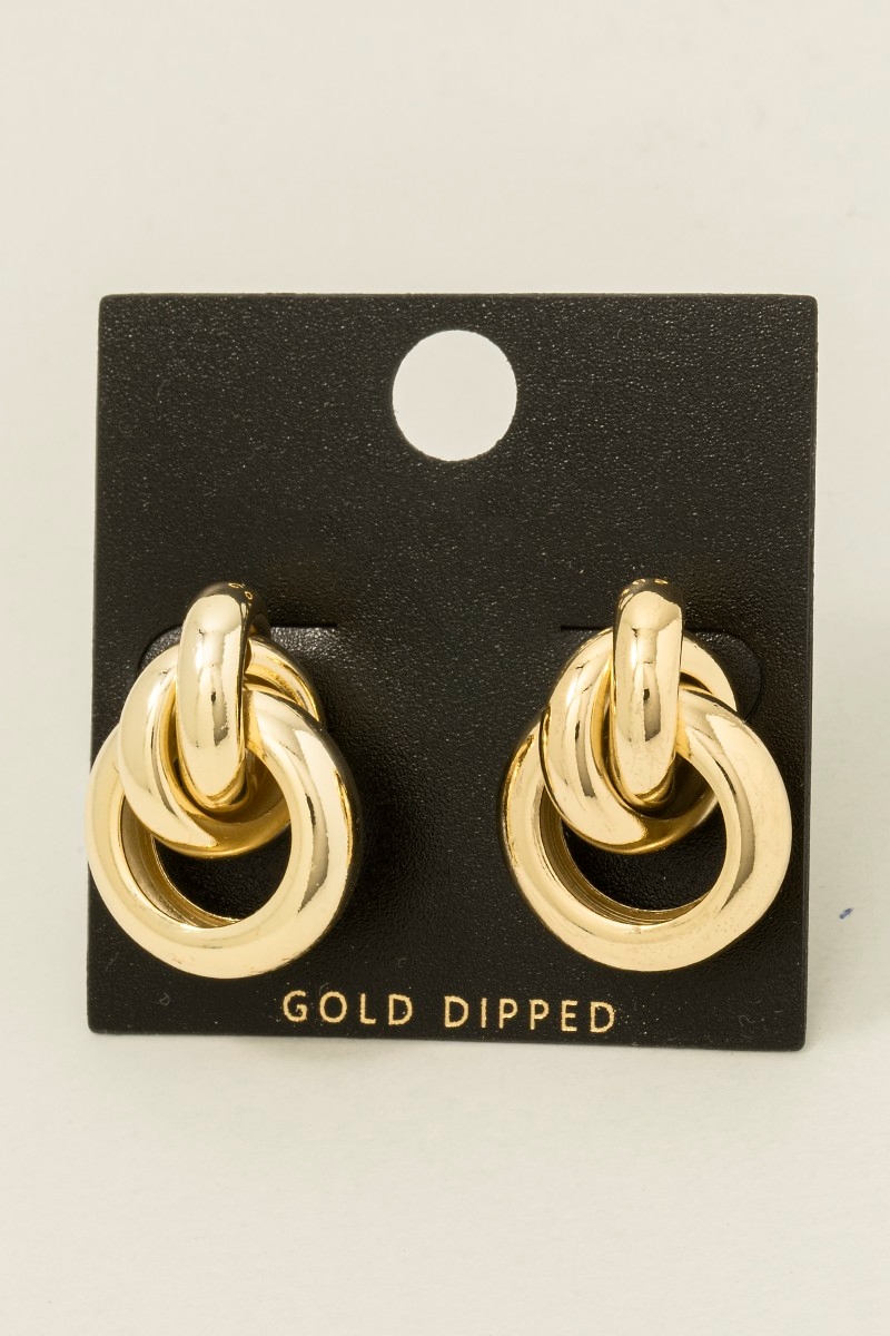 • This pair of earrings showcases a unique gold dipped thick layered door knocker style. Elevate your ensemble with this pair of earrings that effortlessly captures the essence of refined fashion.