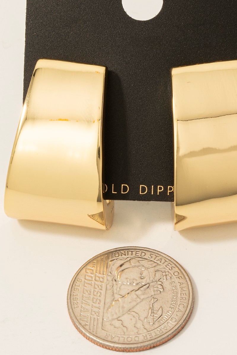 • This pair of drop earrings displays a fashionable gold dipped wide flat j style. Delight in the nuanced details that make this pair of drop earrings a testament to fine design and impeccable taste.