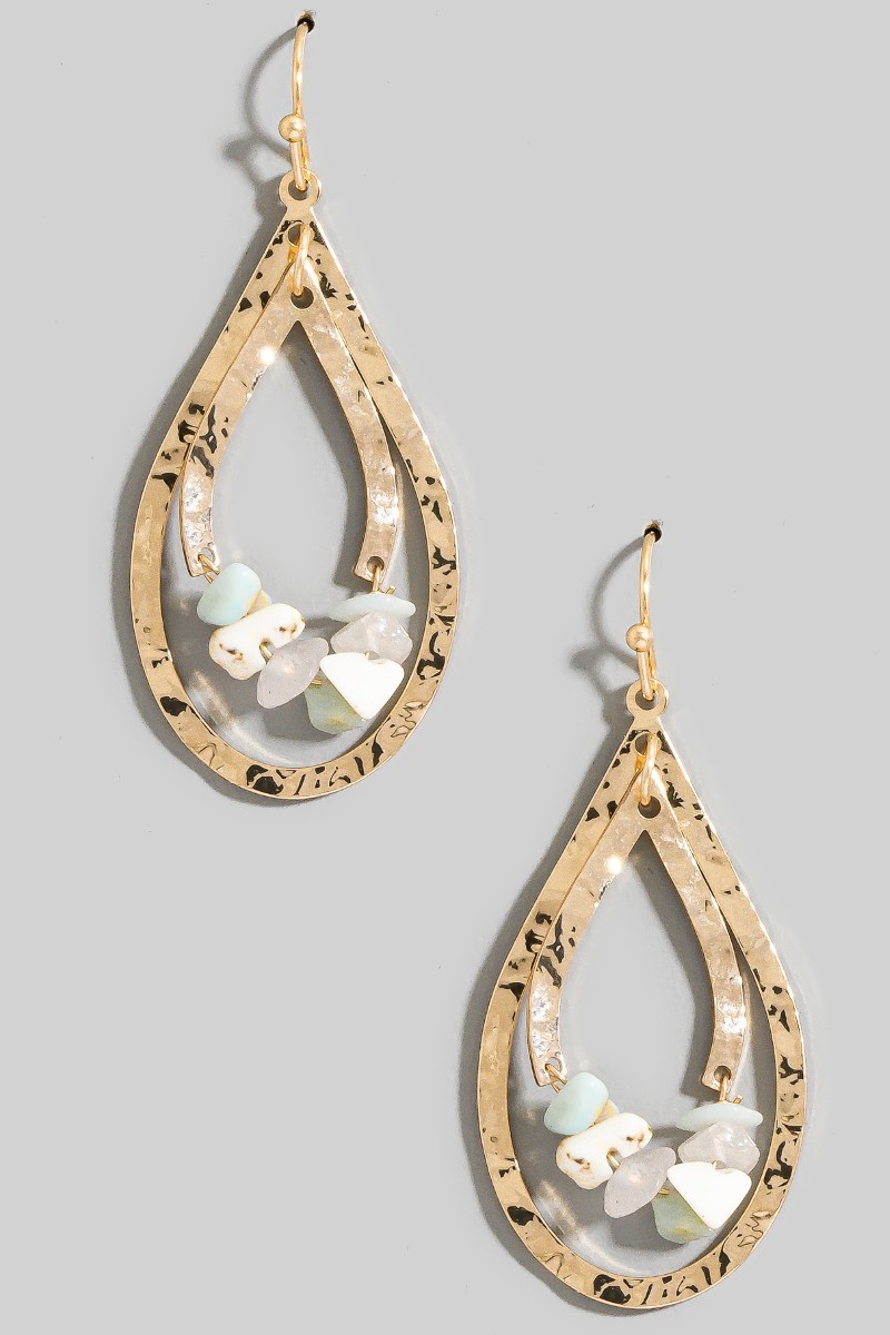 • This pair of earrings displays a vibrant hammered layered teardrop cutout style. Witness the transformative power of accessories as this piece effortlessly redefines your fashion narrative.