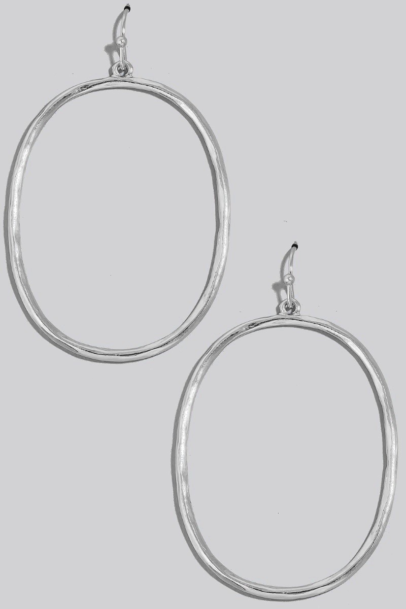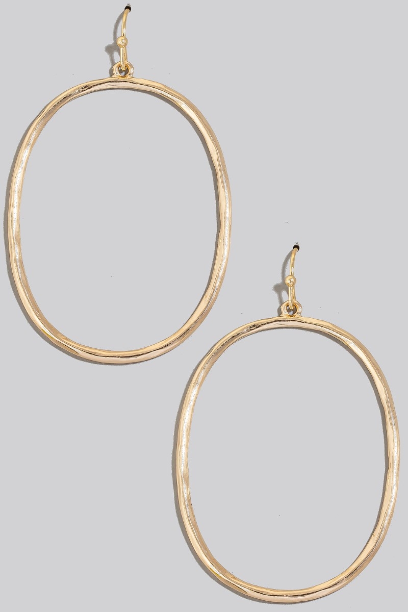 - This pair of dangle earrings introduces a stunning hammered metallic oval style. Celebrate the art of accessorizing with this piece that effortlessly encapsulates modern trends.