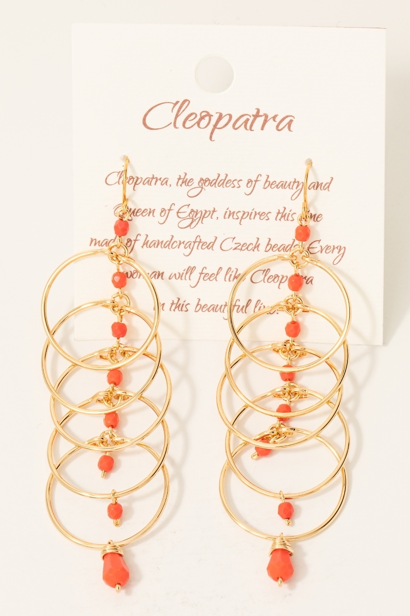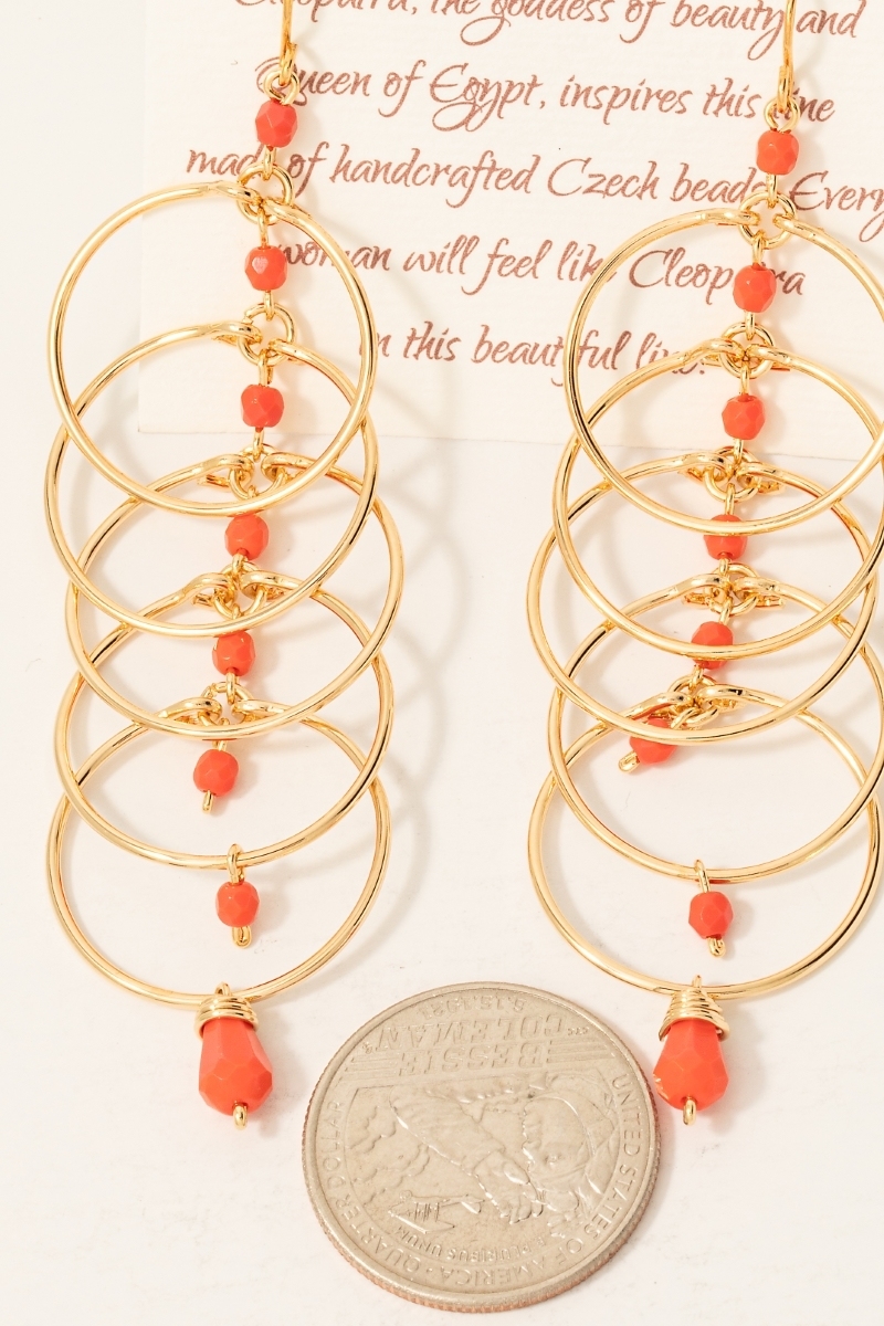 - This pair of earrings showcases a timeless hoops and rust orange beads dangle chain style. Delight in the intricate details that make this pair of earrings an essential element in expressing your fashion identity.