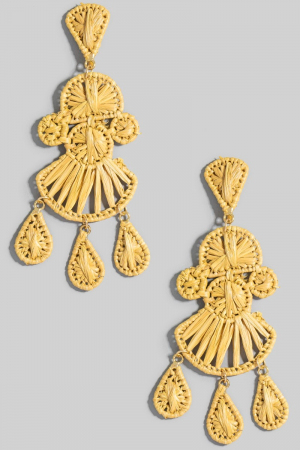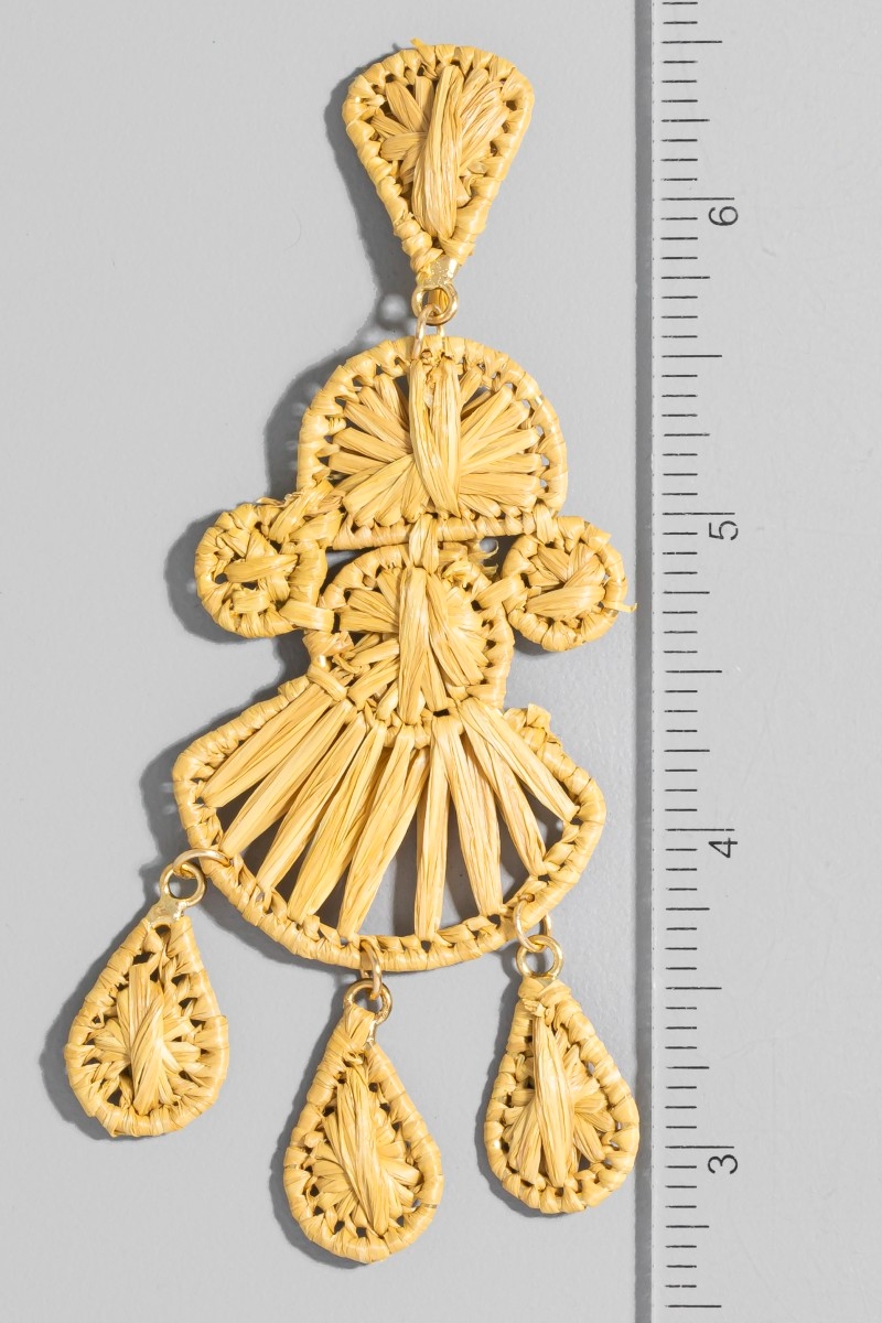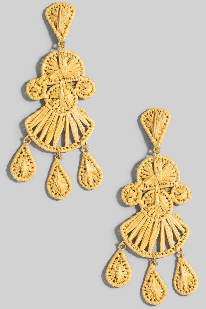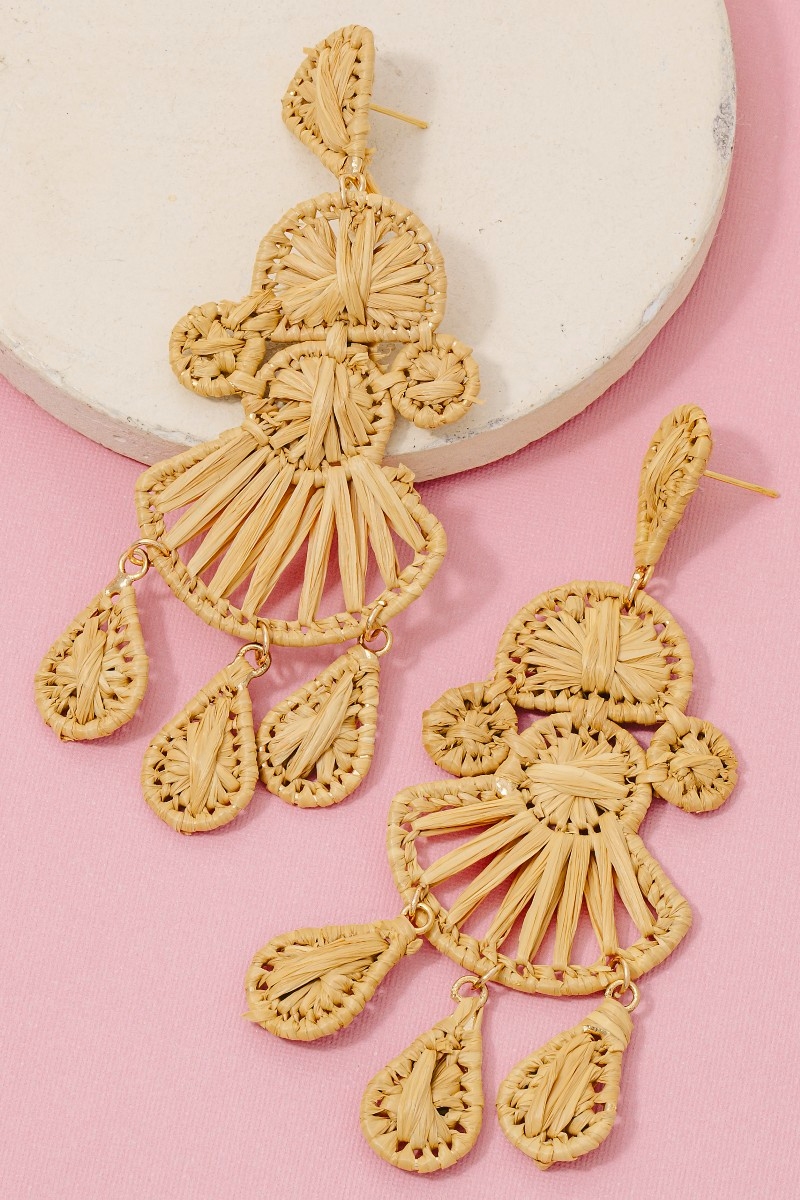 - This pair of dangle earrings showcases a unique intricate raffia wrap chandelier style. Celebrate individual style with this versatile, eye-catching addition.