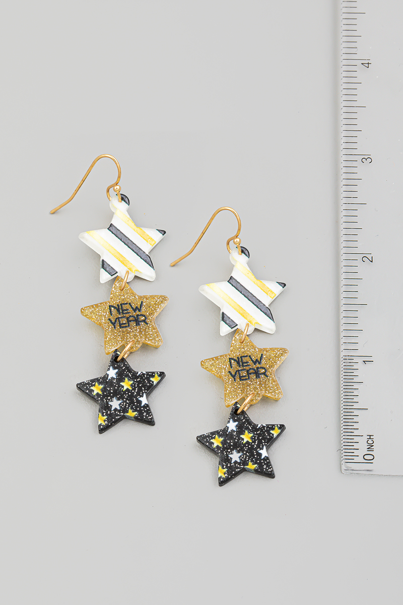 - An amazing trending pair of earrings created into a gorgeous layered star new years earrings design. Perfect for casual occasions!