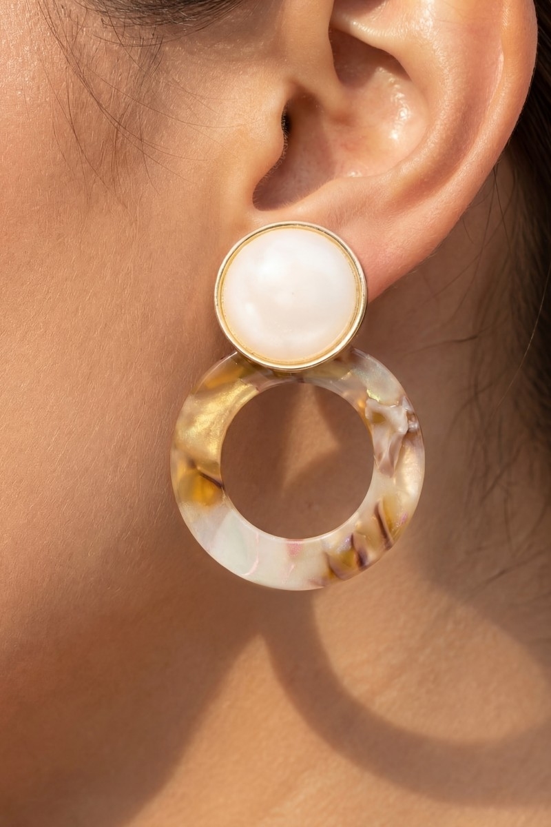 • This pair of drop earrings brings a luxurious marble resin hoop stud style. Savor the allure of detailed craftsmanship in this exquisite pair of drop earrings.