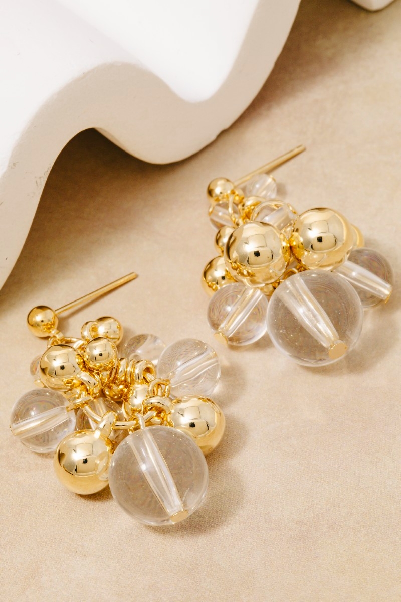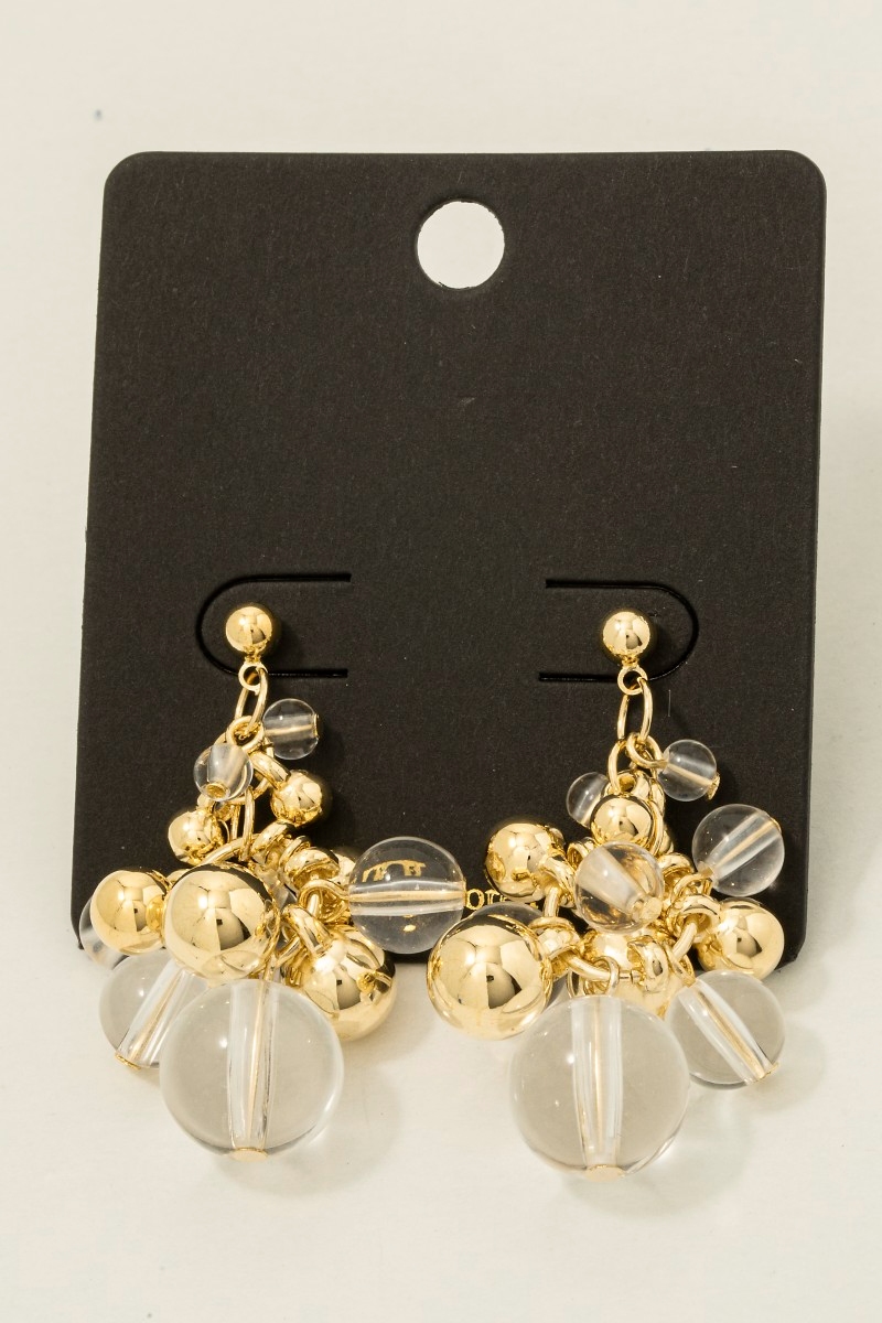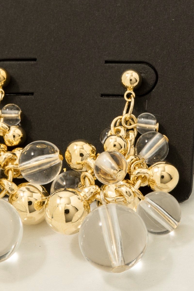 • This pair of dangle earrings features a fashionable metallic and acrlyic beads style. Elevate your ensemble with this pair of dangle earrings that effortlessly captures the essence of refined fashion.