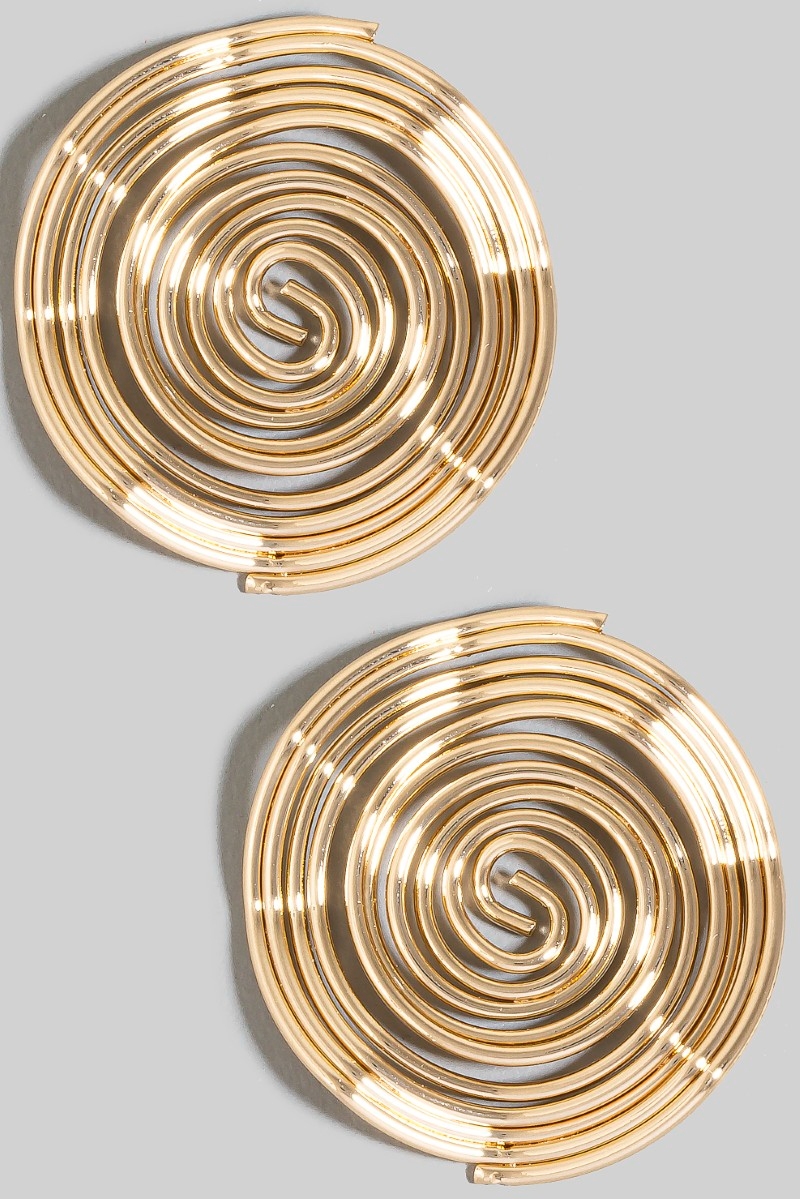 - This pair of drop earrings features a fashionable metallic wire spiral stud style. Indulge in the artistry of accessorizing with this unique piece.