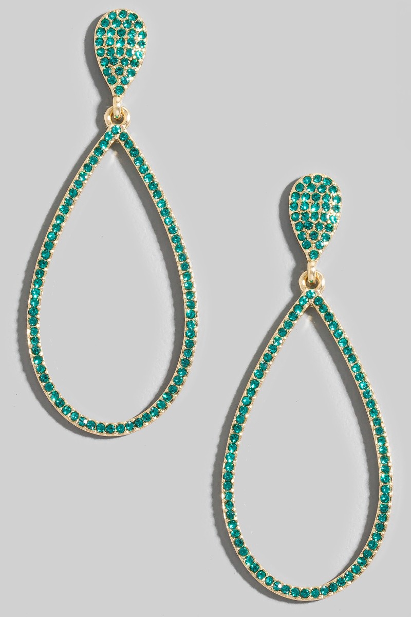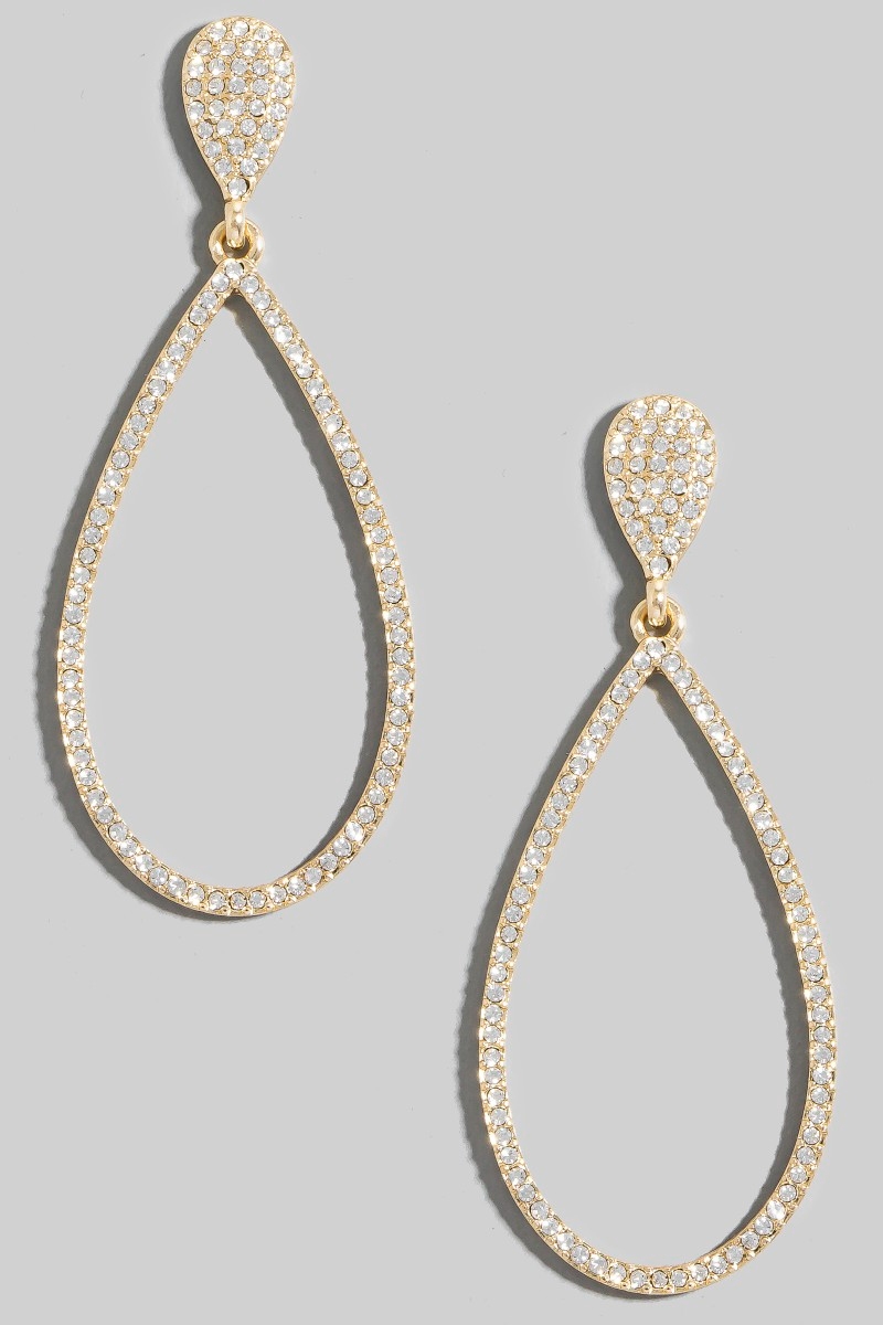 - This pair of dangle earrings brings a stunning pave double teardrop style. Experience the joy of accessorizing with this piece that effortlessly combines versatility and charm.