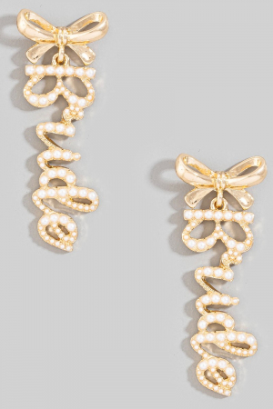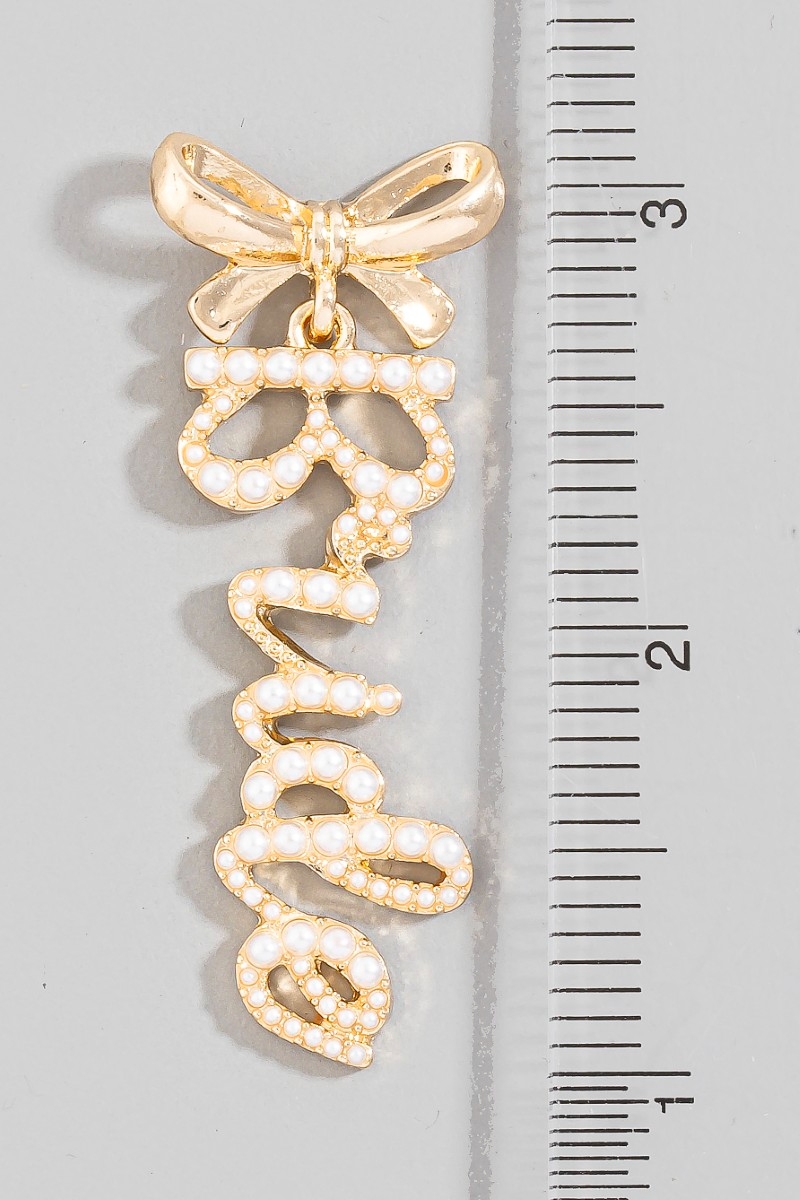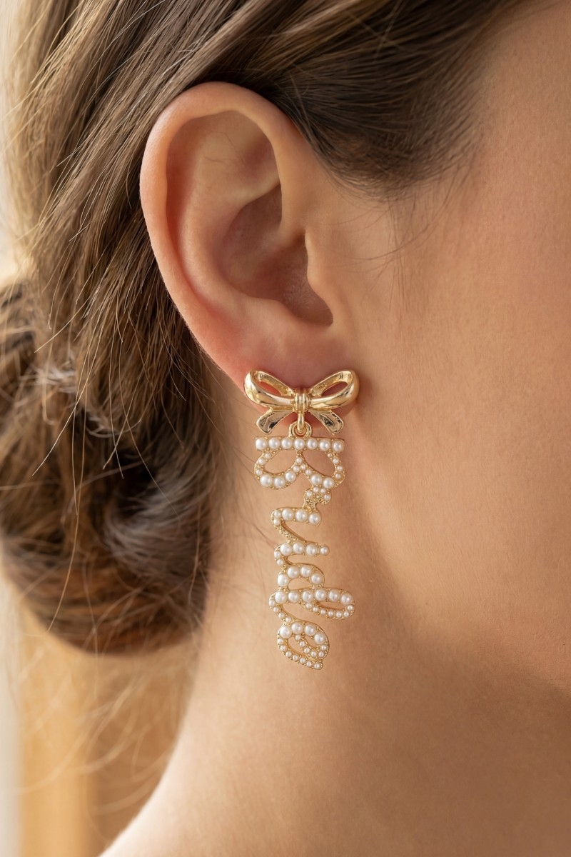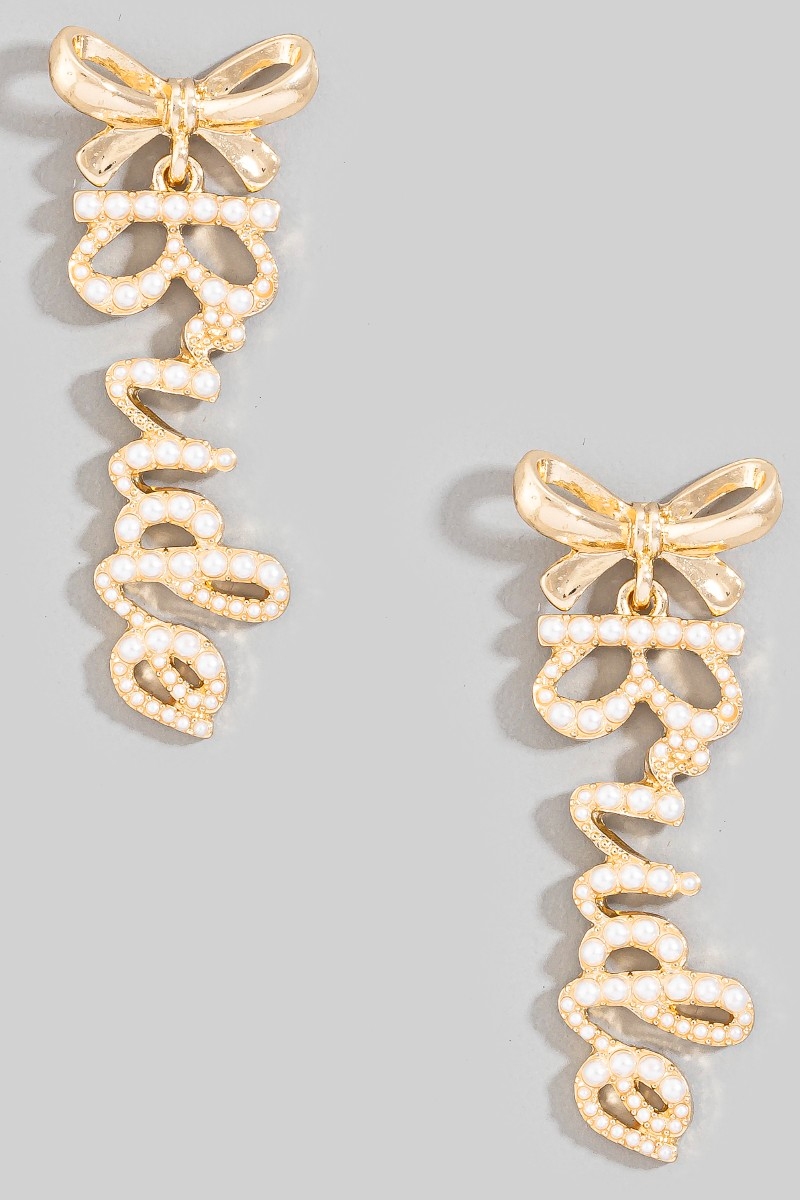 - This pair of dangle earrings introduces a unique pearl pave bride and bow stud style. Discover the perfect balance of subtlety and flair as this pair of dangle earrings effortlessly completes your look.