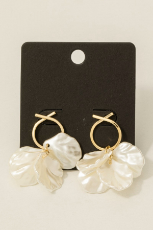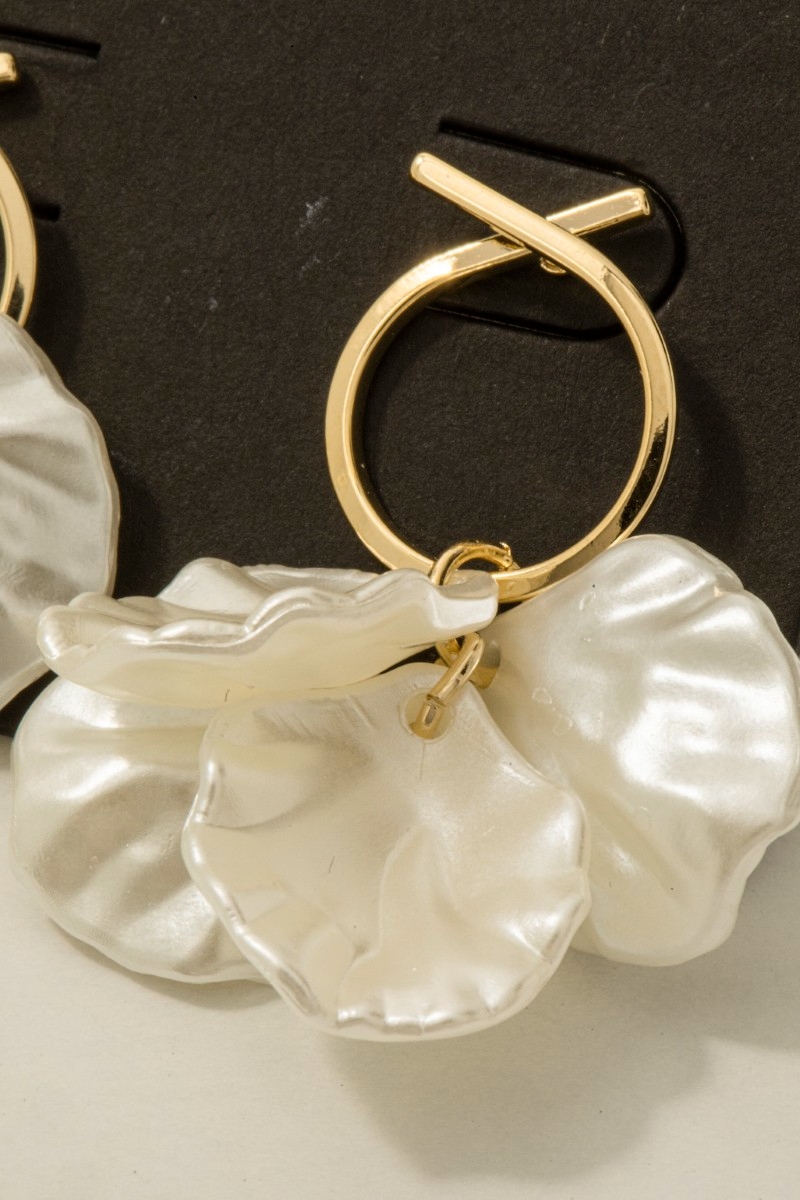• This pair of dangle earrings introduces a stunning pearly petal charms style. Redefine your look effortlessly with this standout, on-trend piece.