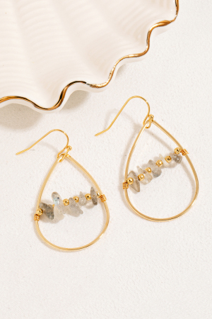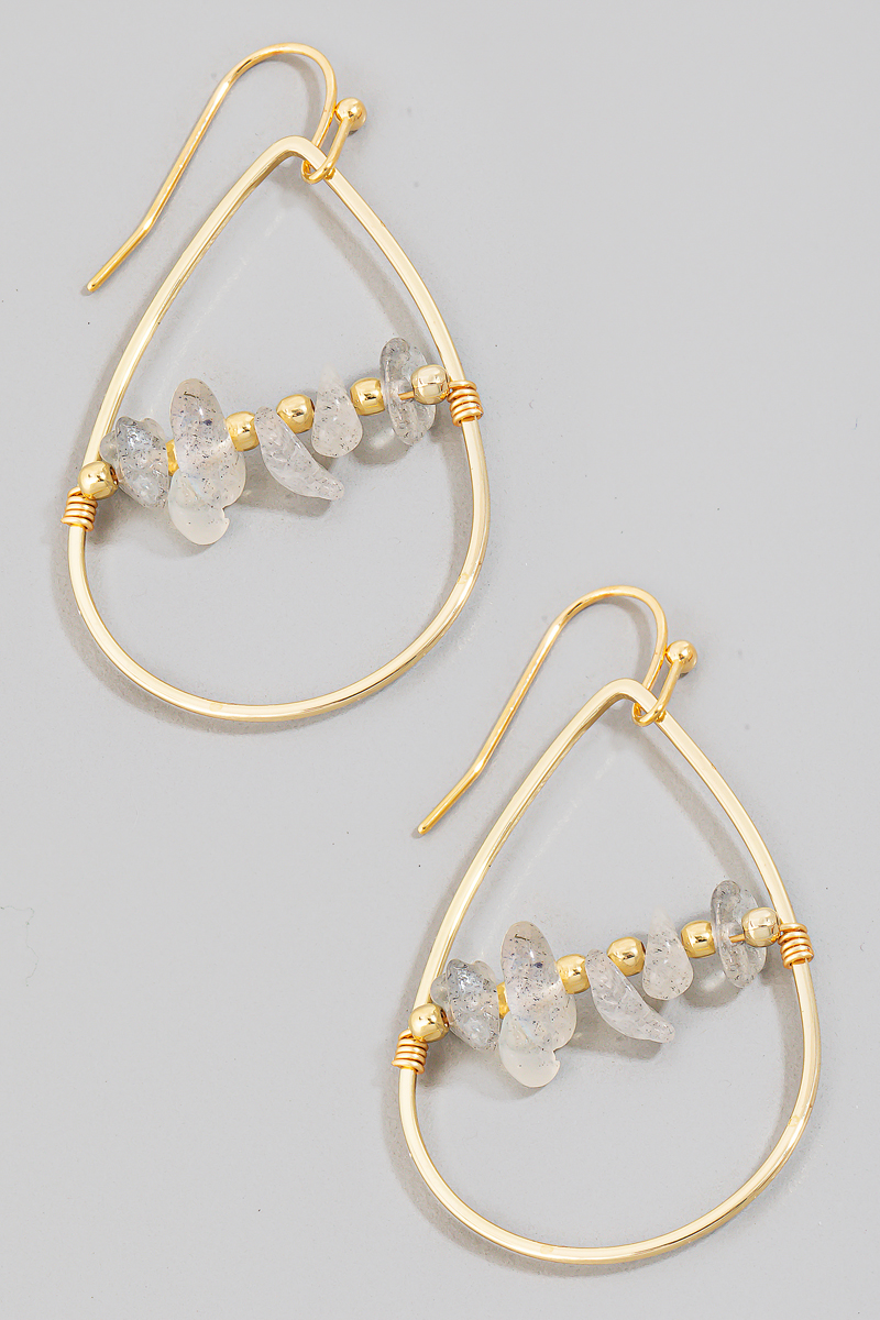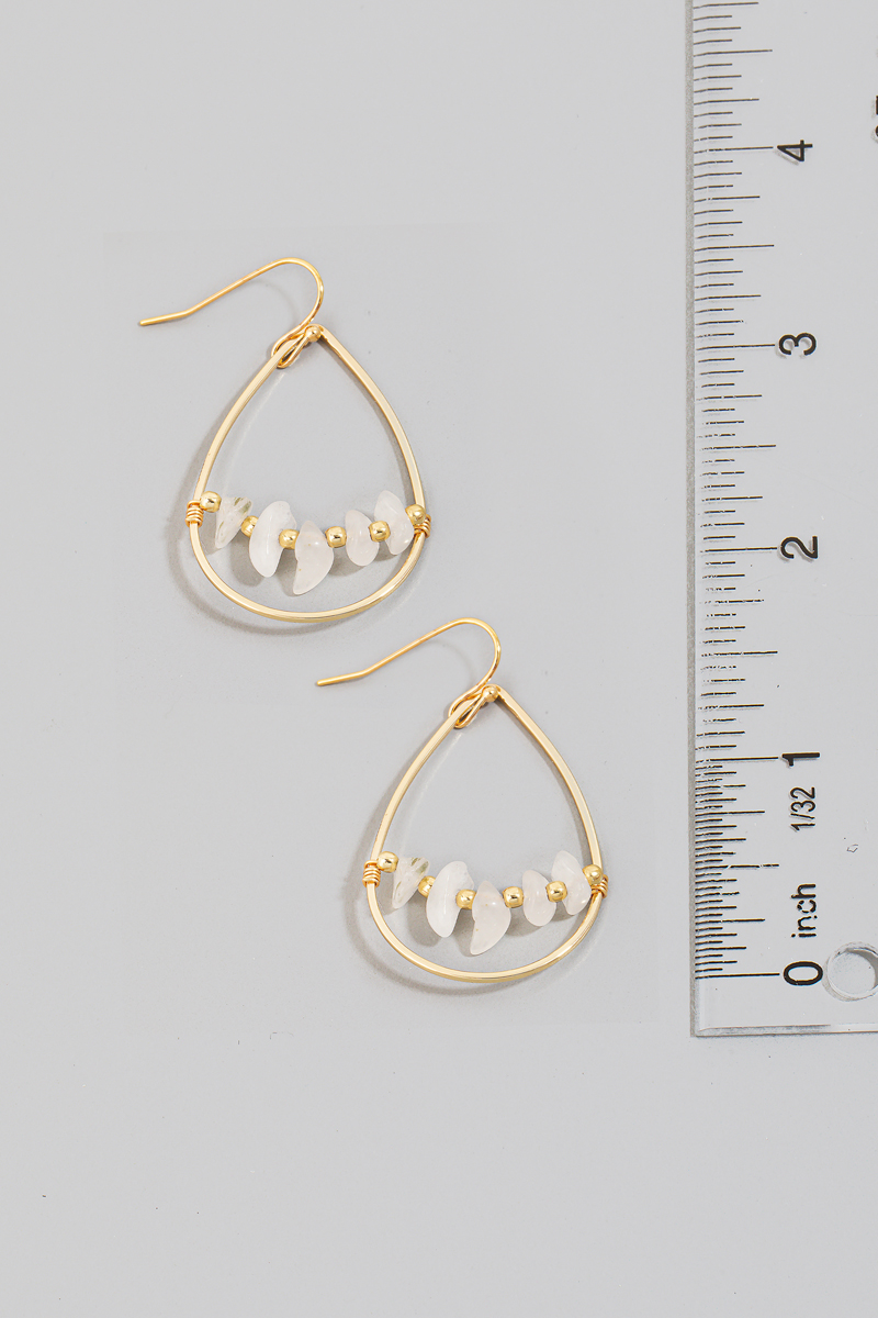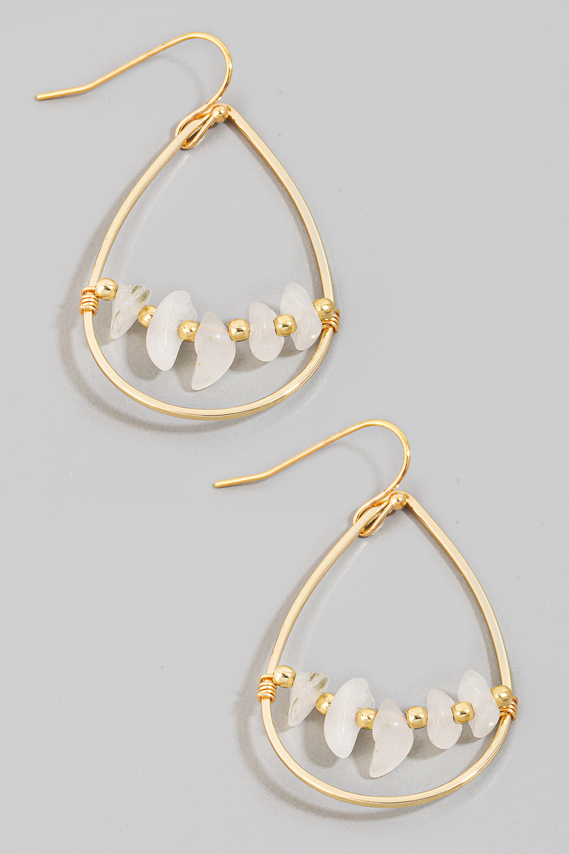 - This pair of dangle earrings showcases a timeless pebble stone beads tear style. Celebrate the art of accessorizing with this piece that effortlessly encapsulates modern trends.