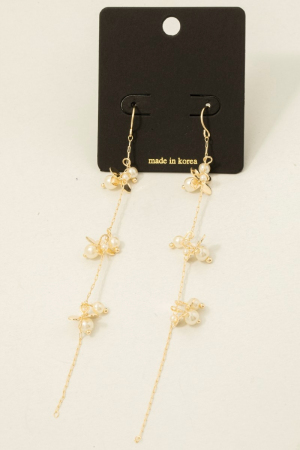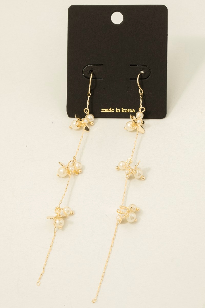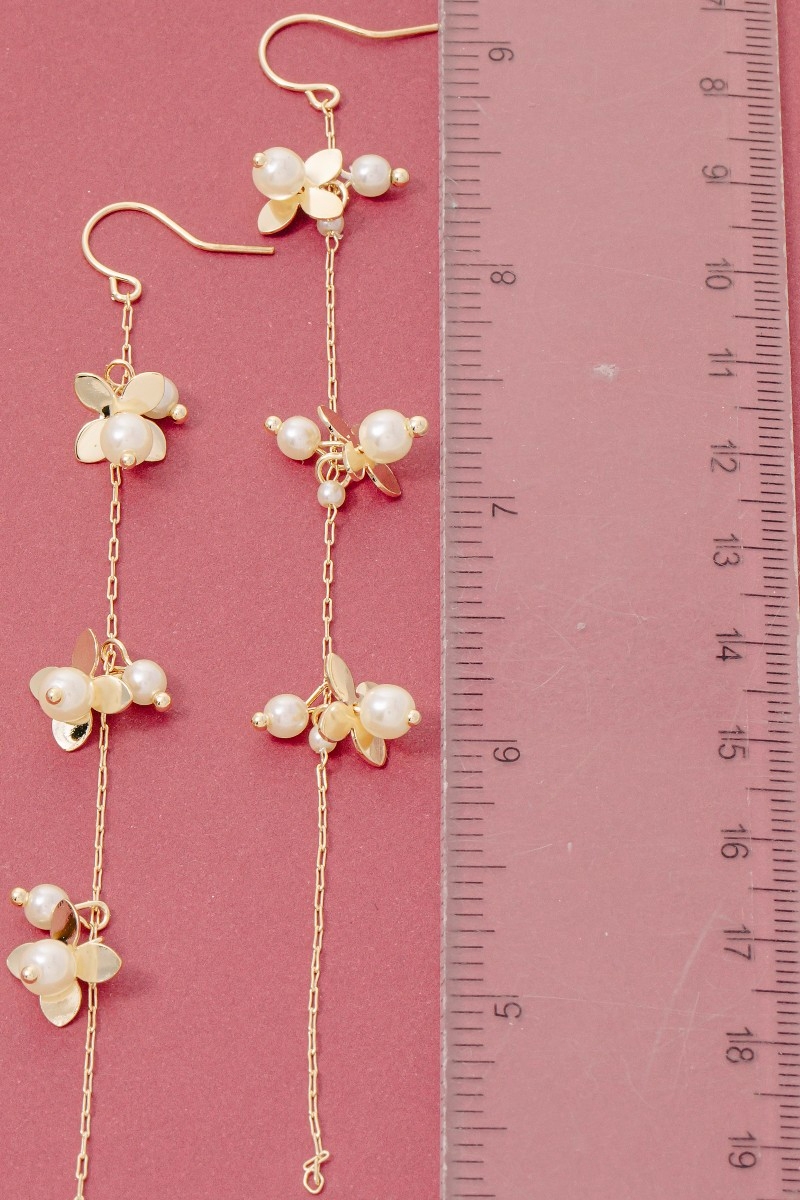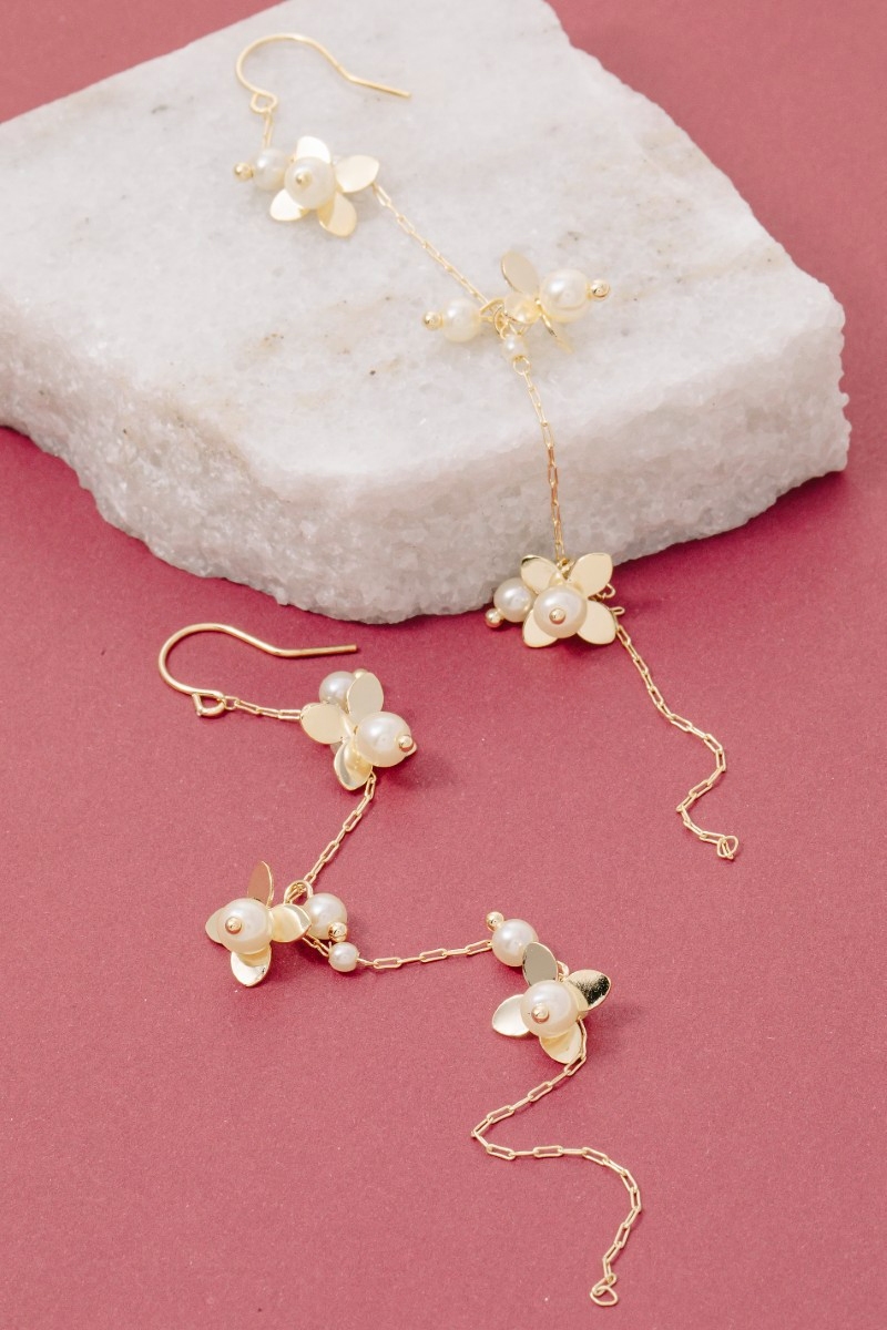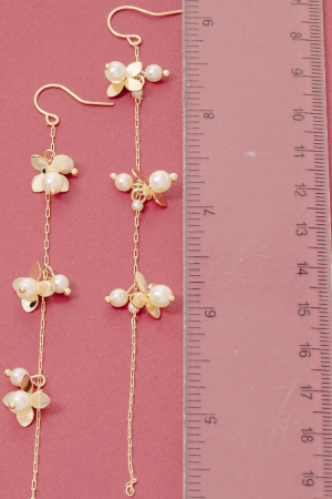• This pair of earrings introduces a unique petals and pearls dangle chain style. Elevate your ensemble with this pair of earrings that effortlessly captures the essence of refined fashion.