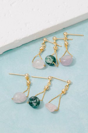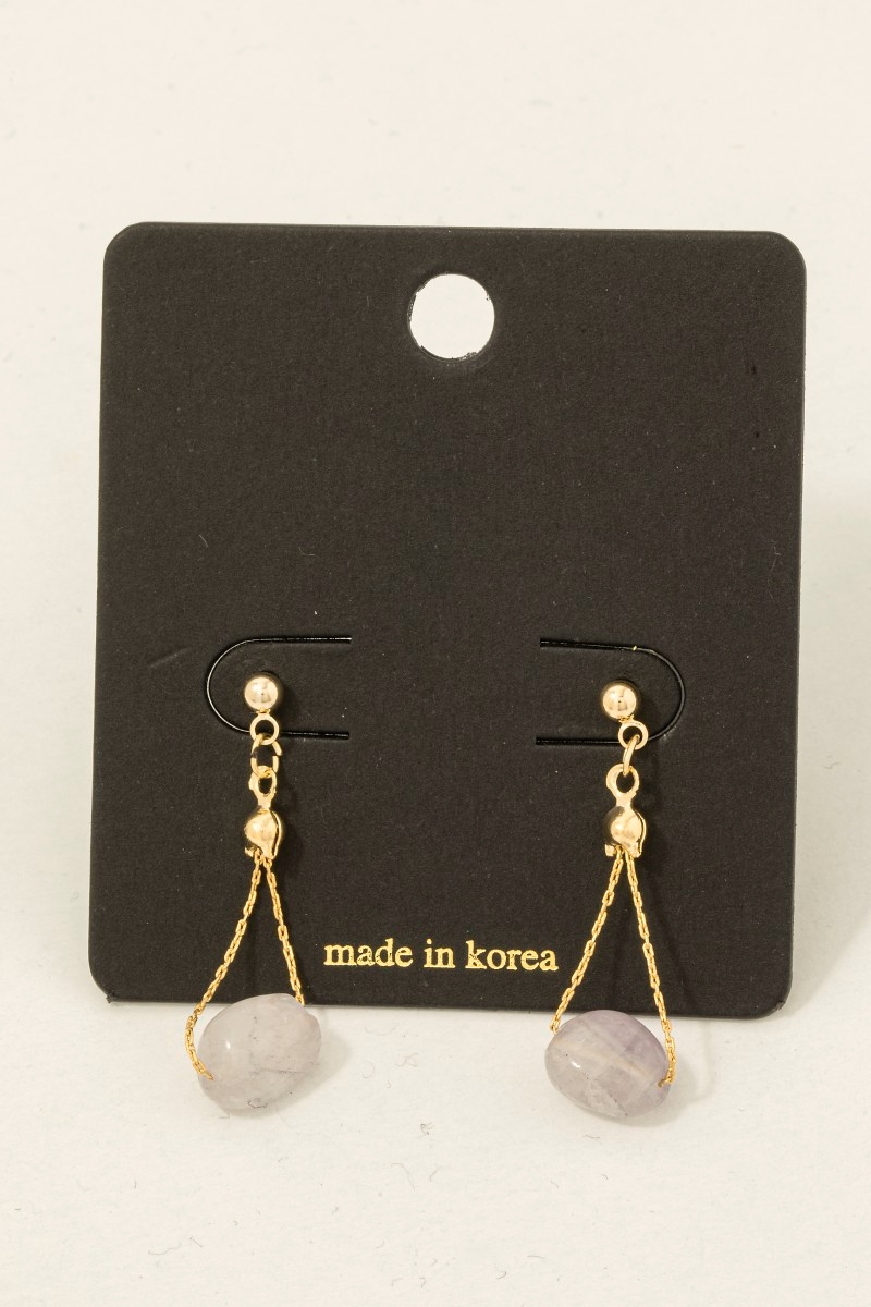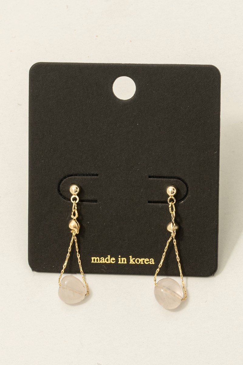 • This pair of dangle earrings showcases a timeless polished stone bead chain style. Experience refined sophistication with this understated yet stylish piece.
