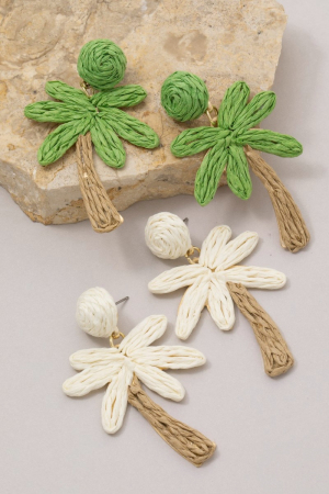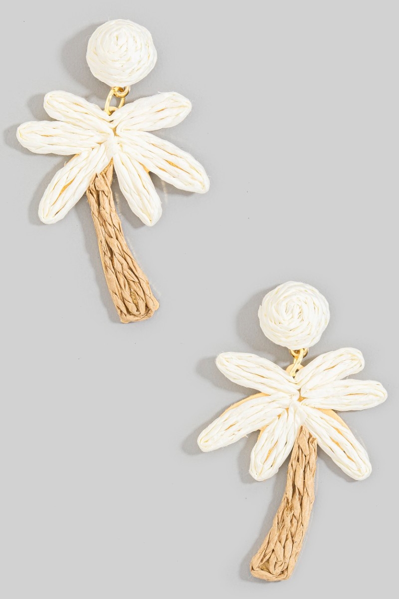 - This pair of dangle earrings introduces a stunning raffia palm tree stud style. Explore a refined sense of style with this pair of dangle earrings, seamlessly elevating the chic factor of your look.