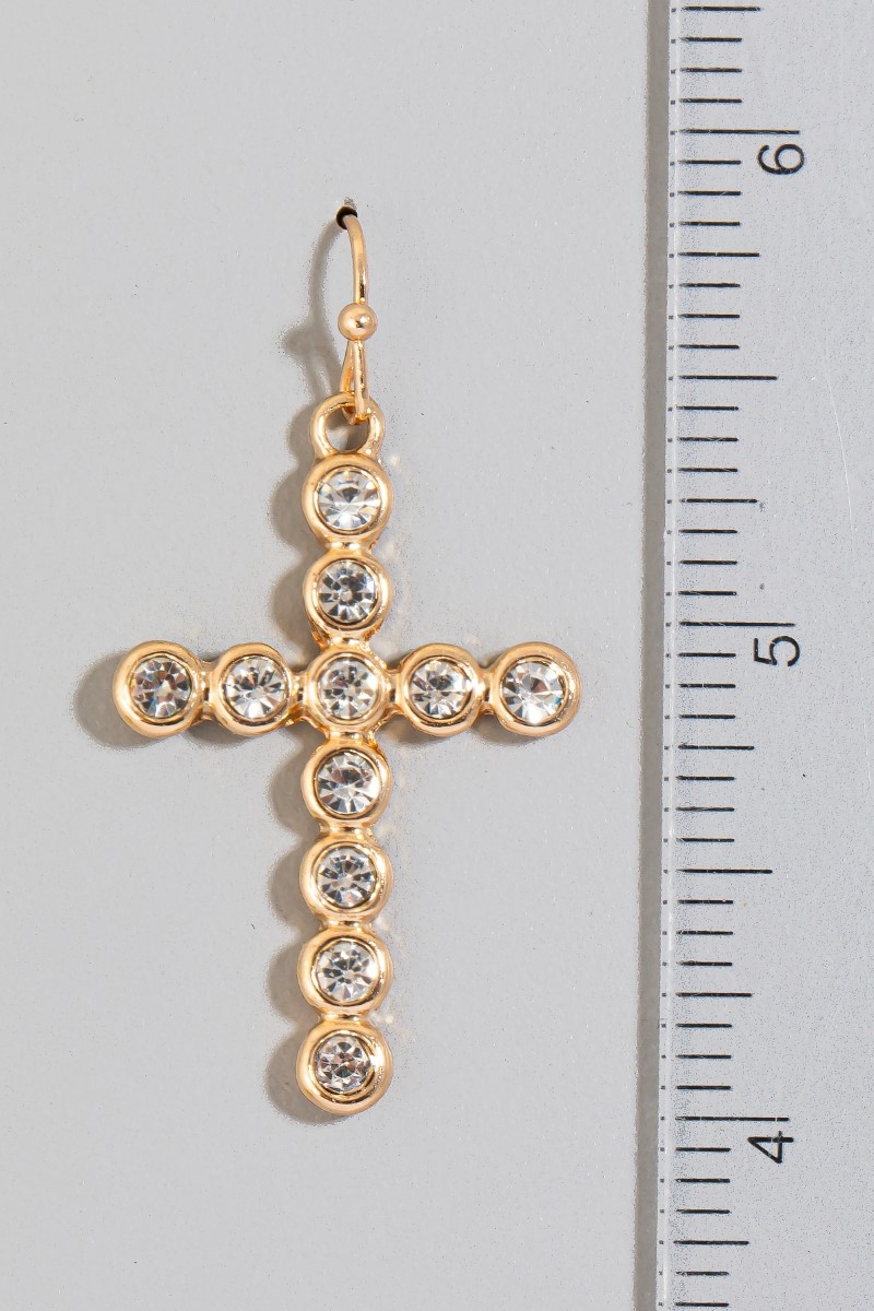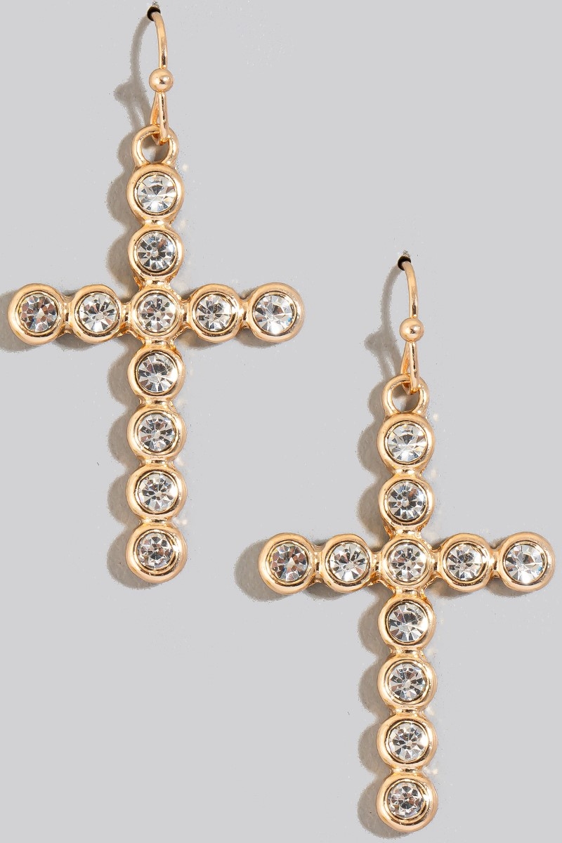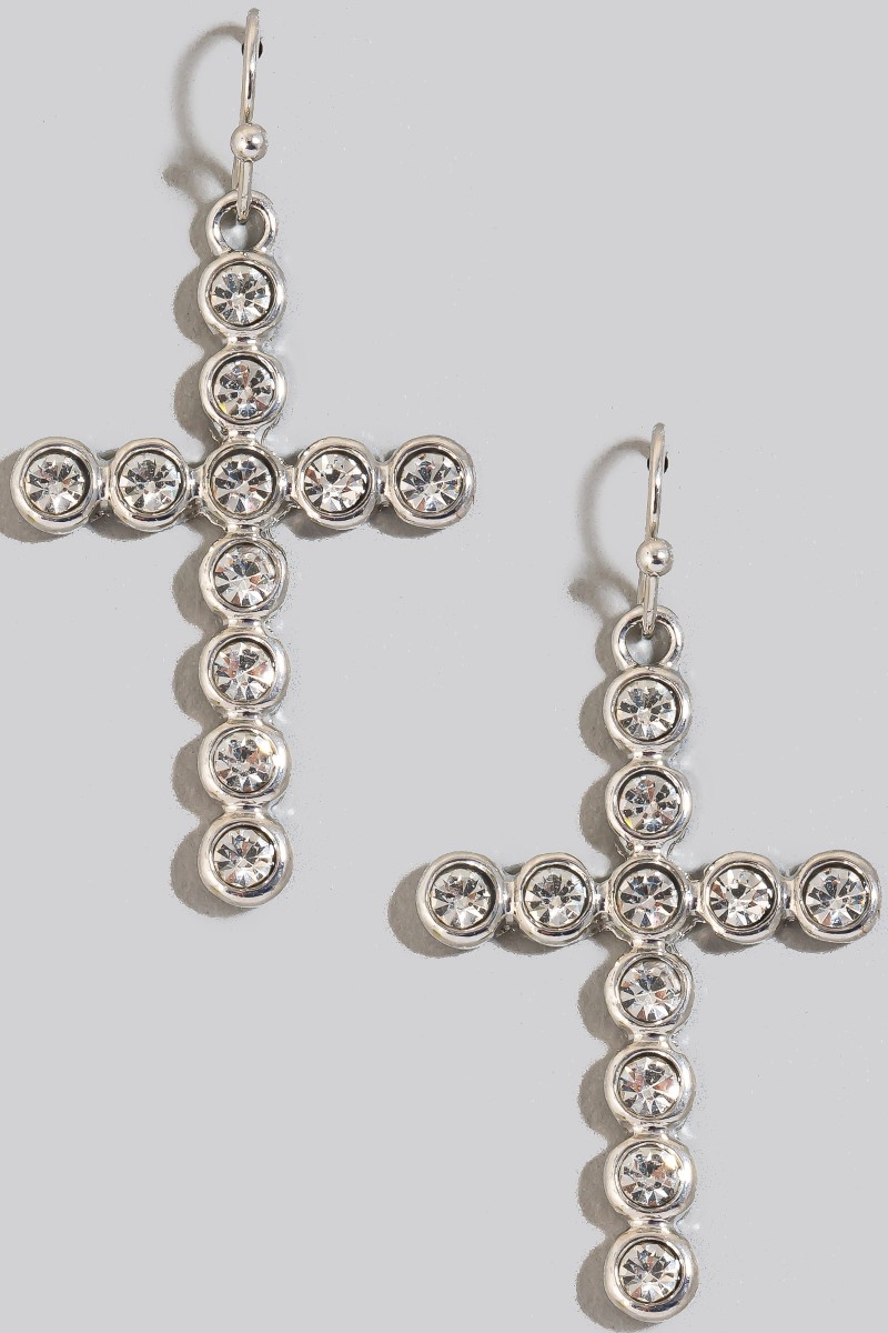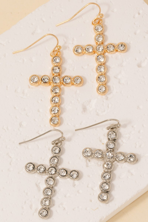 - This pair of dangle earrings adds a modern rhinestone pave cross style. Embark on a journey of sartorial refinement as this pair of dangle earrings effortlessly complements your fashion sense.