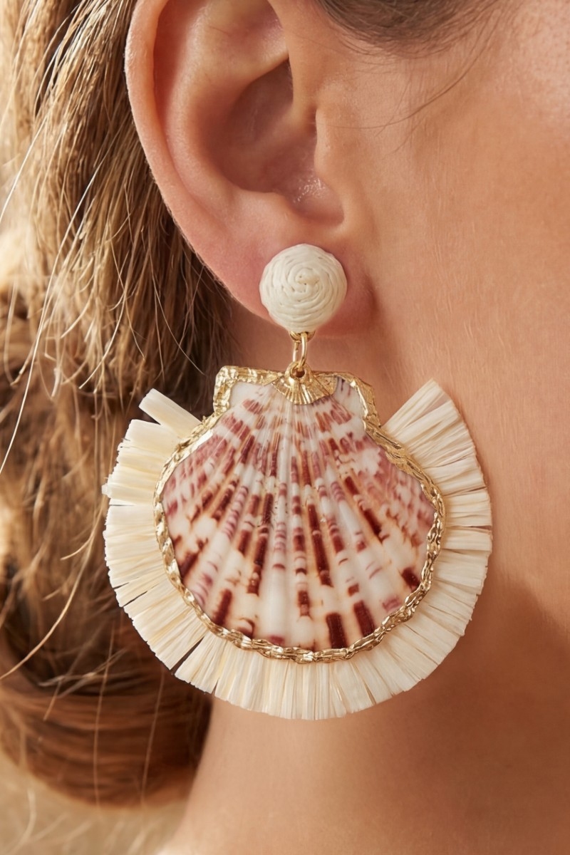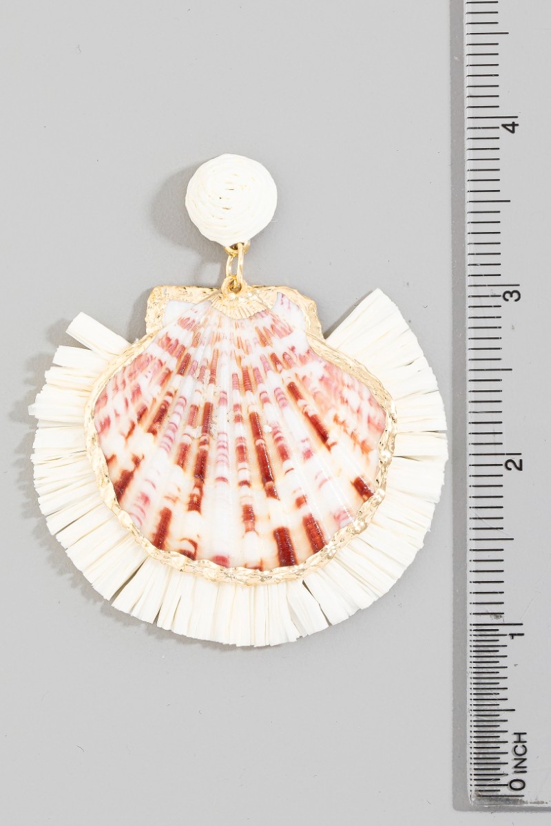 • This pair of dangle earrings adds a modern sea shell and fridge stud style. Indulge in the allure of exquisite craftsmanship as this pair of dangle earrings effortlessly adds a touch of luxury to your attire.