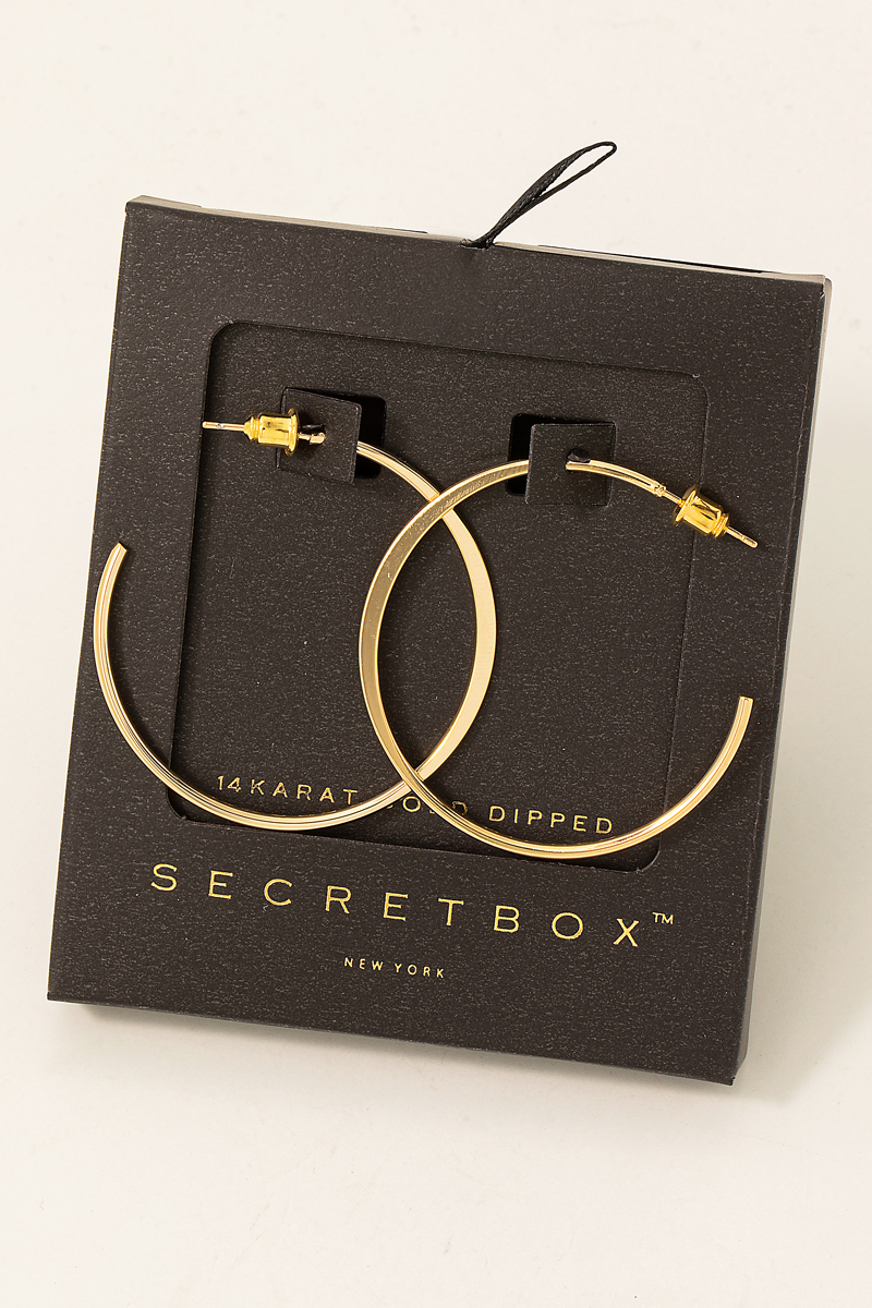• This pair of hoop earrings introduces a stunning secret box metallic open hoop earrings style. Savor the allure of detailed craftsmanship in this exquisite accessory.
