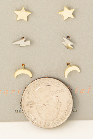 - This pair of earrings displays a fashionable sterling silver moon lightning star stud earring set style. Experience a burst of creativity in accessorizing as this piece effortlessly sets the tone for your unique style.