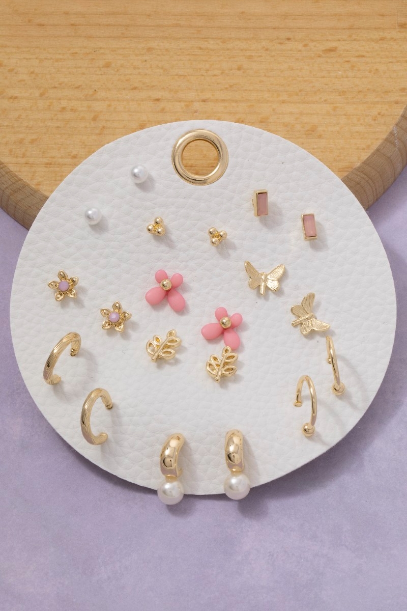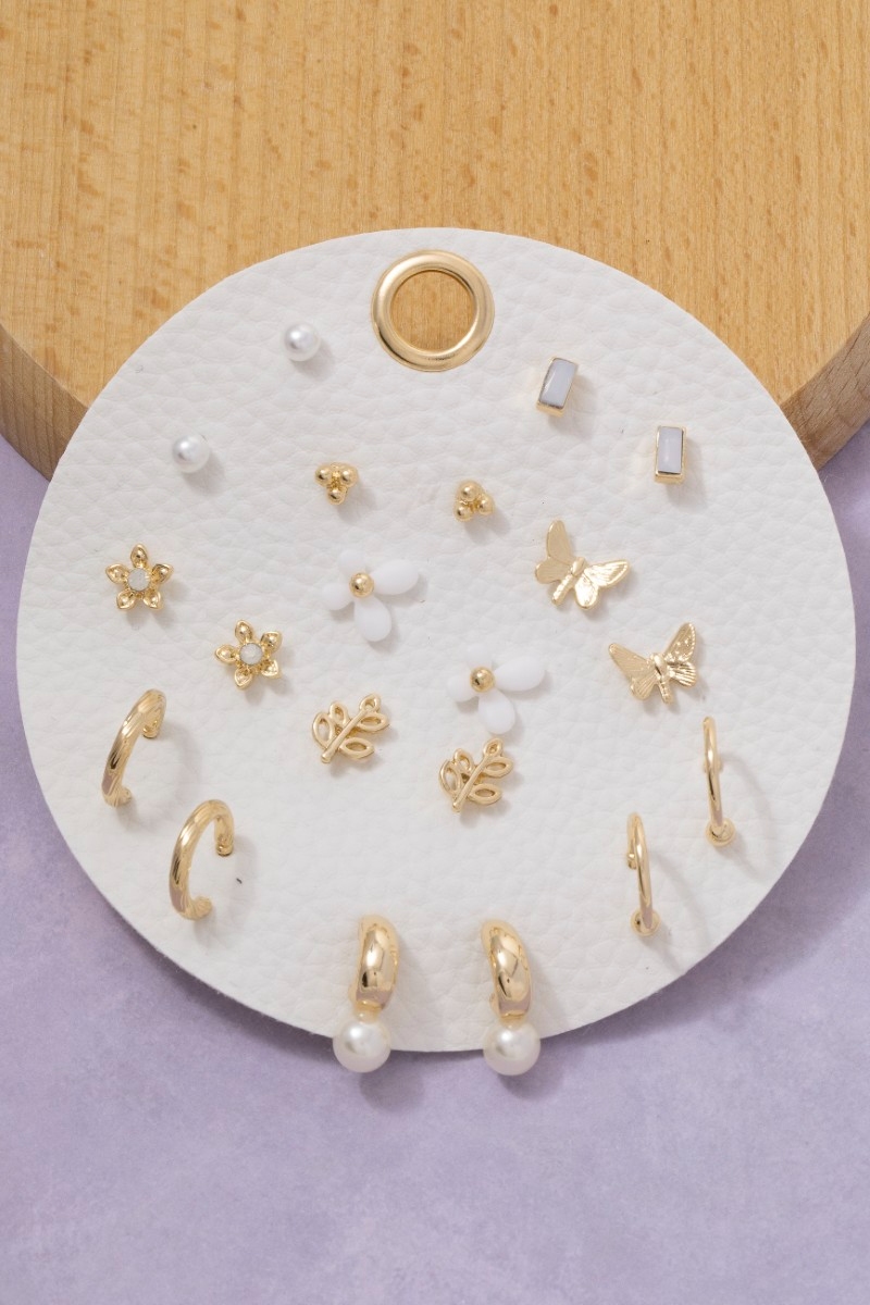 • This pair of earrings adds a modern ten pair assorted butterfly flower set style. Celebrate individual style with this versatile, eye-catching addition.