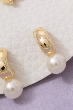 Metallic And Pearl Rectangle Stud Dangle Earrings