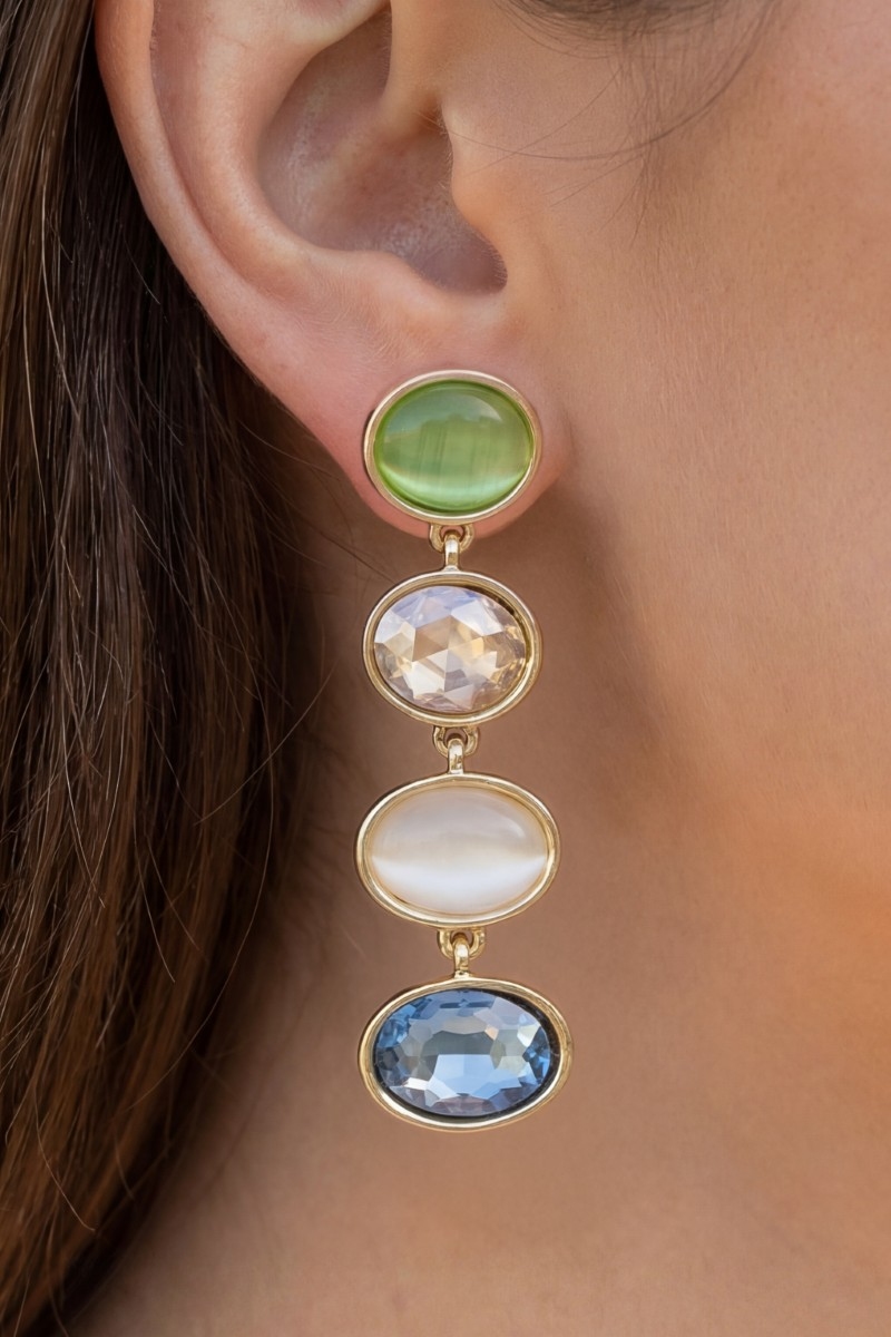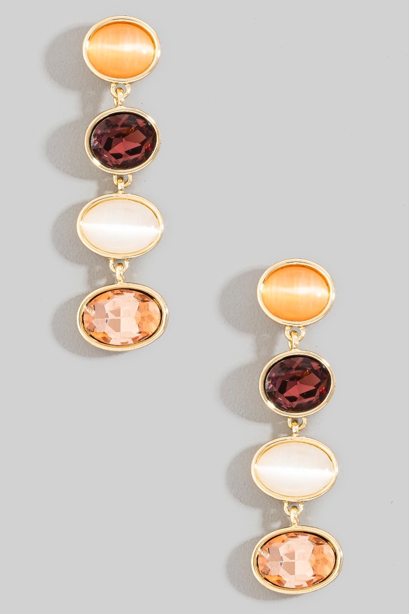 - This pair of drop earrings showcases a timeless tiered oval crystal style. Witness the perfect fusion of style and functionality as this pair of drop earrings effortlessly complements your lifestyle.