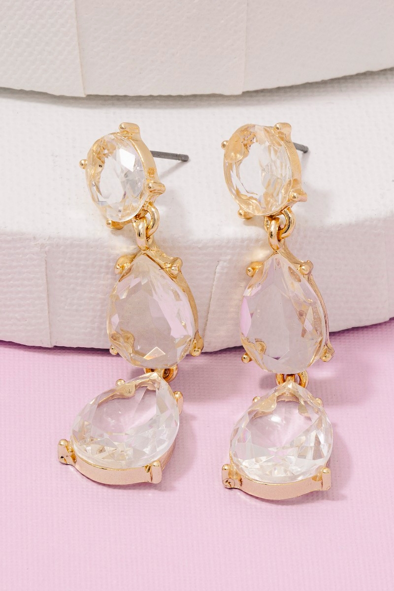 - This pair of dangle earrings introduces a stunning triple faceted teardrop style. Witness the perfect fusion of style and functionality as this pair of dangle earrings effortlessly complements your lifestyle.