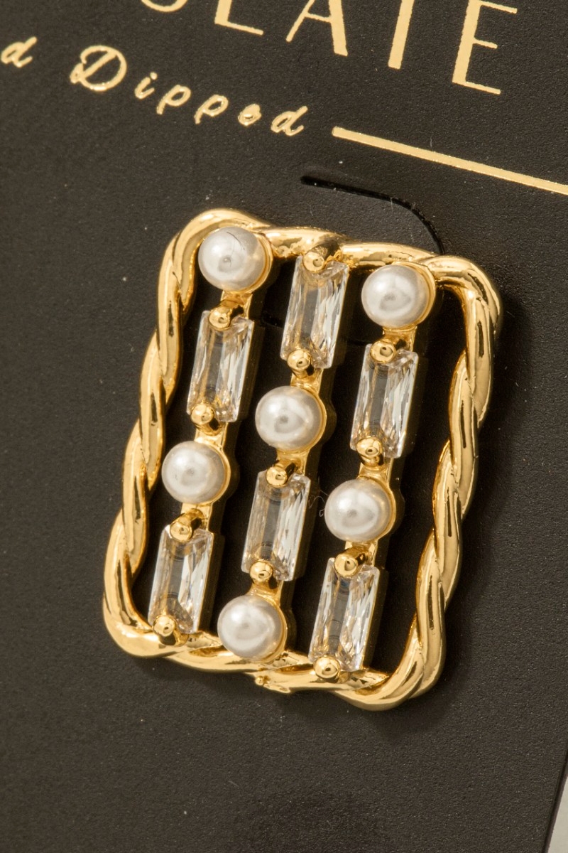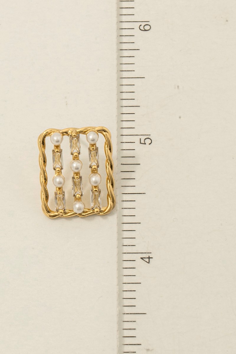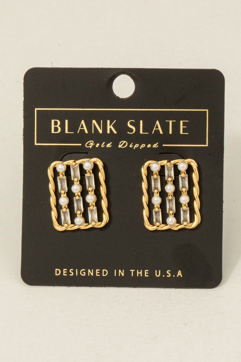 - This pair of earrings showcases a unique twisted rope cubic zirconia studded rectangle style. Indulge in the artistry of accessorizing with this unique piece.