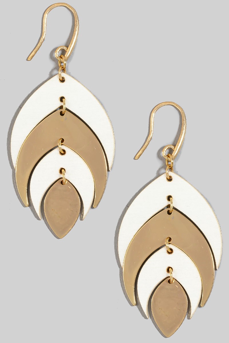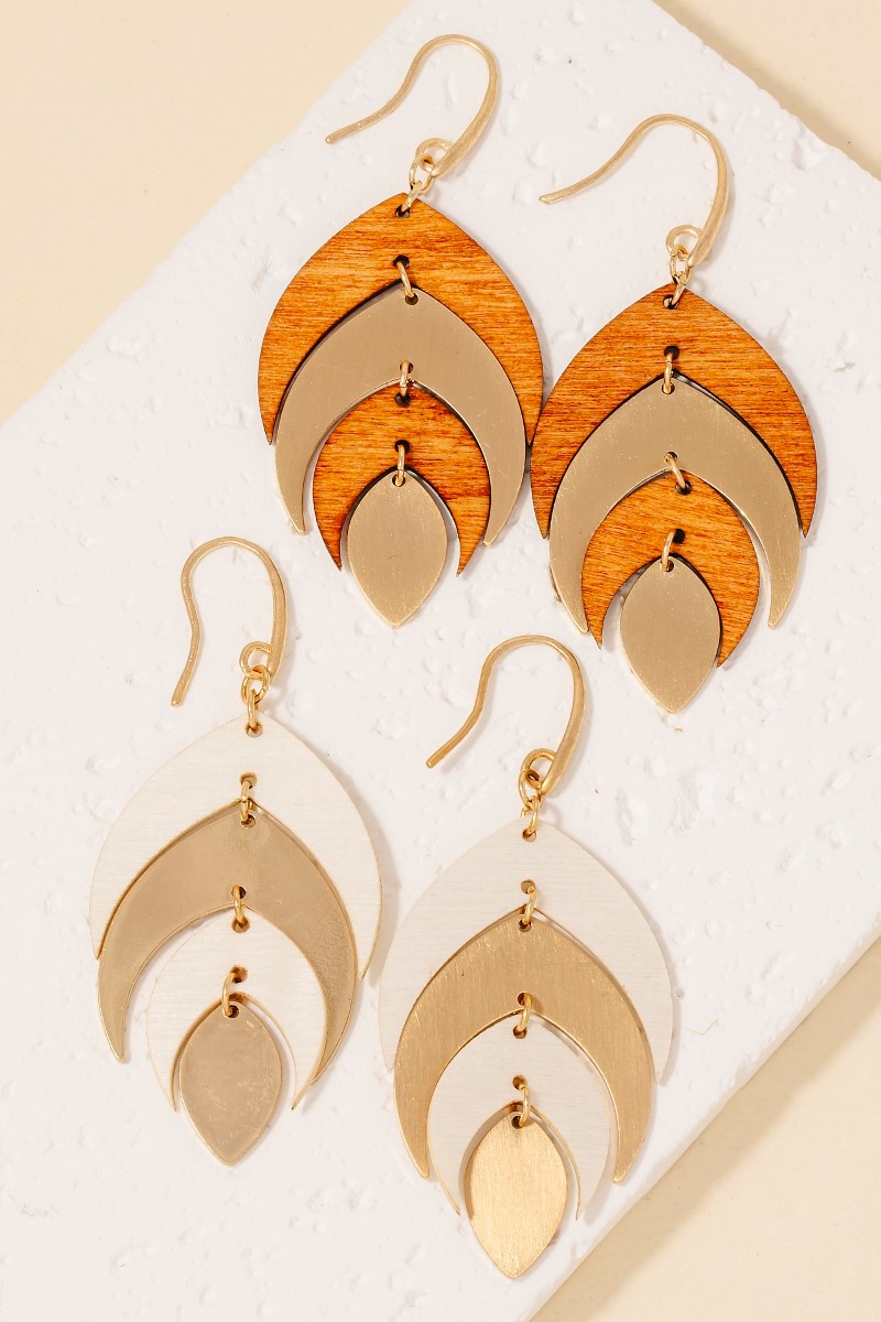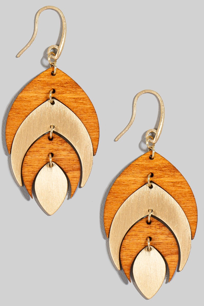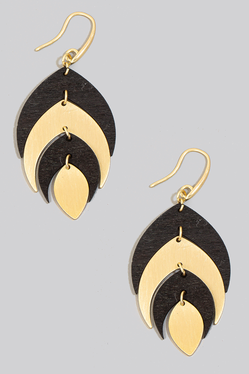 - This pair of earrings brings a luxurious wood and metallic leaf dangle hook style. Celebrate individuality with this pair of earrings that effortlessly expresses your unique sense of style.