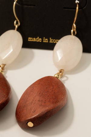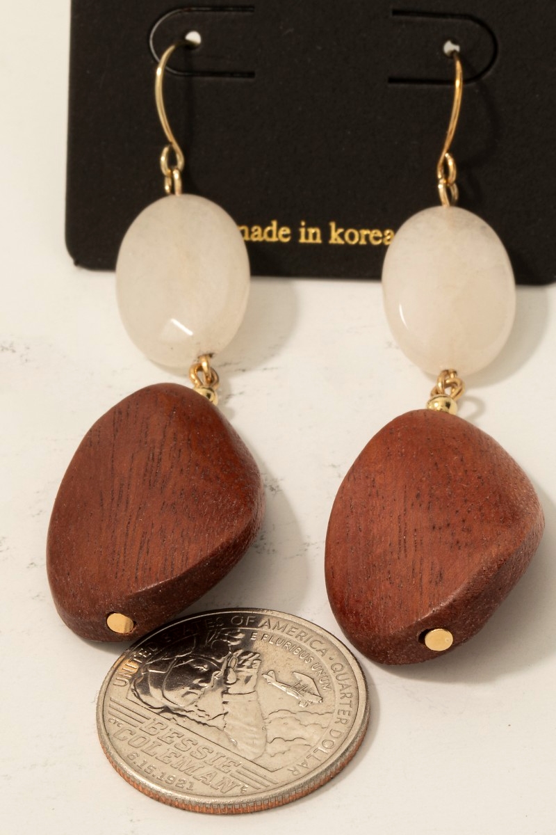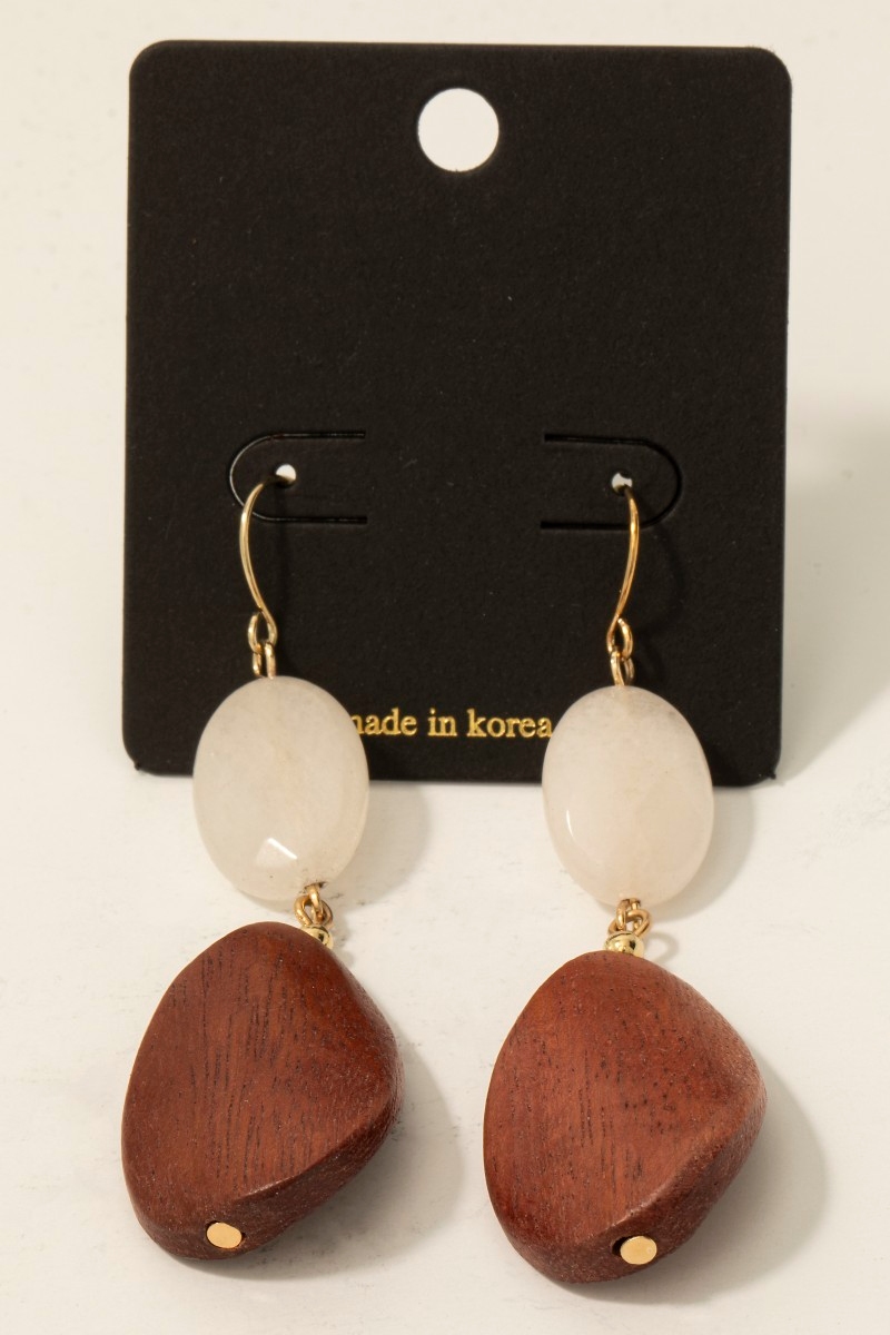 - This pair of earrings showcases a timeless wood and stone dangle hook style. Elevate your ensemble with this chic, timeless pair of earrings.