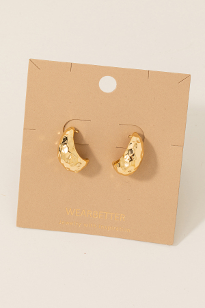 - This pair of hoop earrings displays a fashionable dented metallic style. Discover the perfect balance of functionality and fashion.