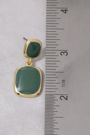 • This pair of drop earrings features a fashionable double cushion colored stone style. Experience a subtle blend of modernity and classic charm as this pair of drop earrings effortlessly adorns your ensemble.